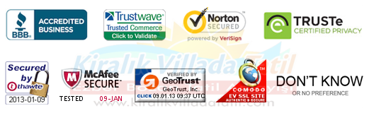 Kiralık Villada Tatil, kendi kontrolünde olan gizli bilgilerin korunması ile ilgili aşağıda bulunan güvenlik şirketleri ile işbirliği yapmakta ve bilgileriniz güvenle korunmaktadır.