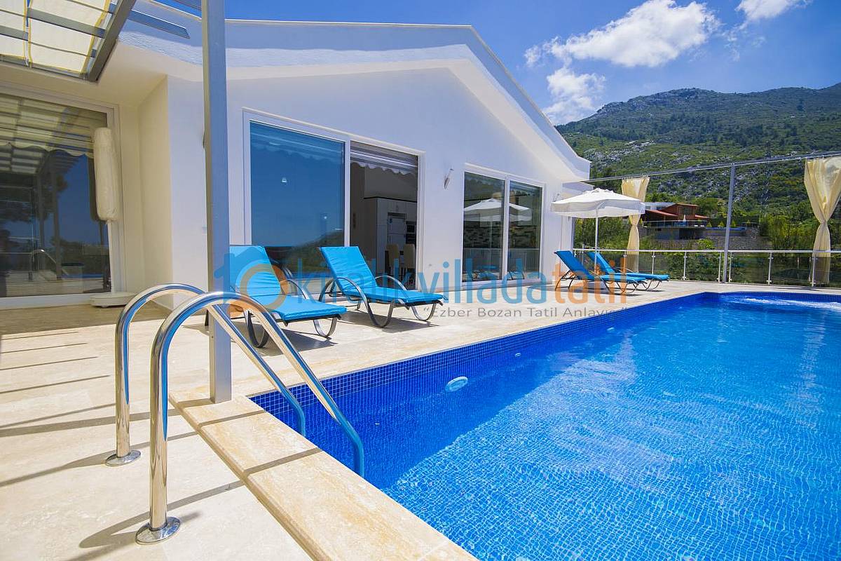 Oldukça kaliteli ve sade bir şekilde dizayn edilen villamız çok kullanışlı geniş alanlara sahiptir. Geniş havuz terası, geniş havuzu ve havuz jakuzisi, ana yatak odasındaki manzaralı jakuzisi öne çıkan özellikleridir.