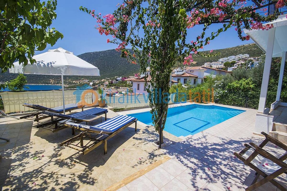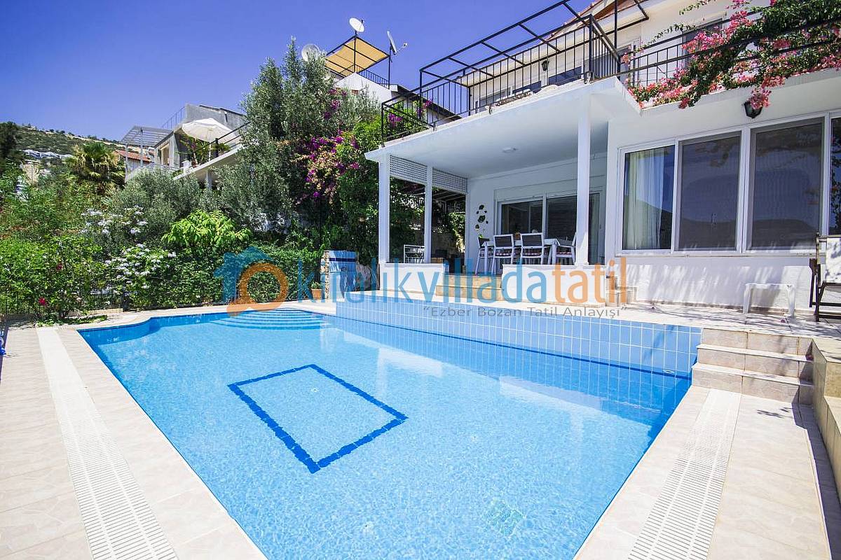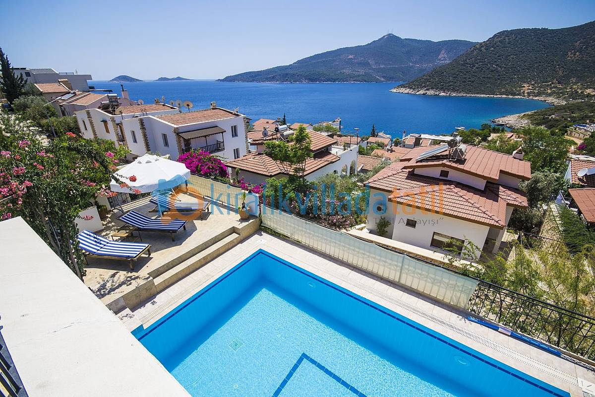 Kalkan Kalamar bölgesinde bulunan bu tatil villası, 4 yatak odası ile 8 kişilik kapasiteye sahiptir.