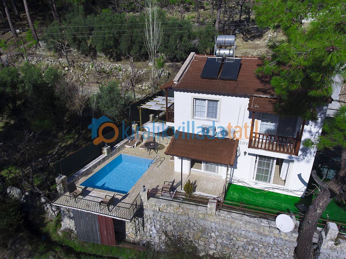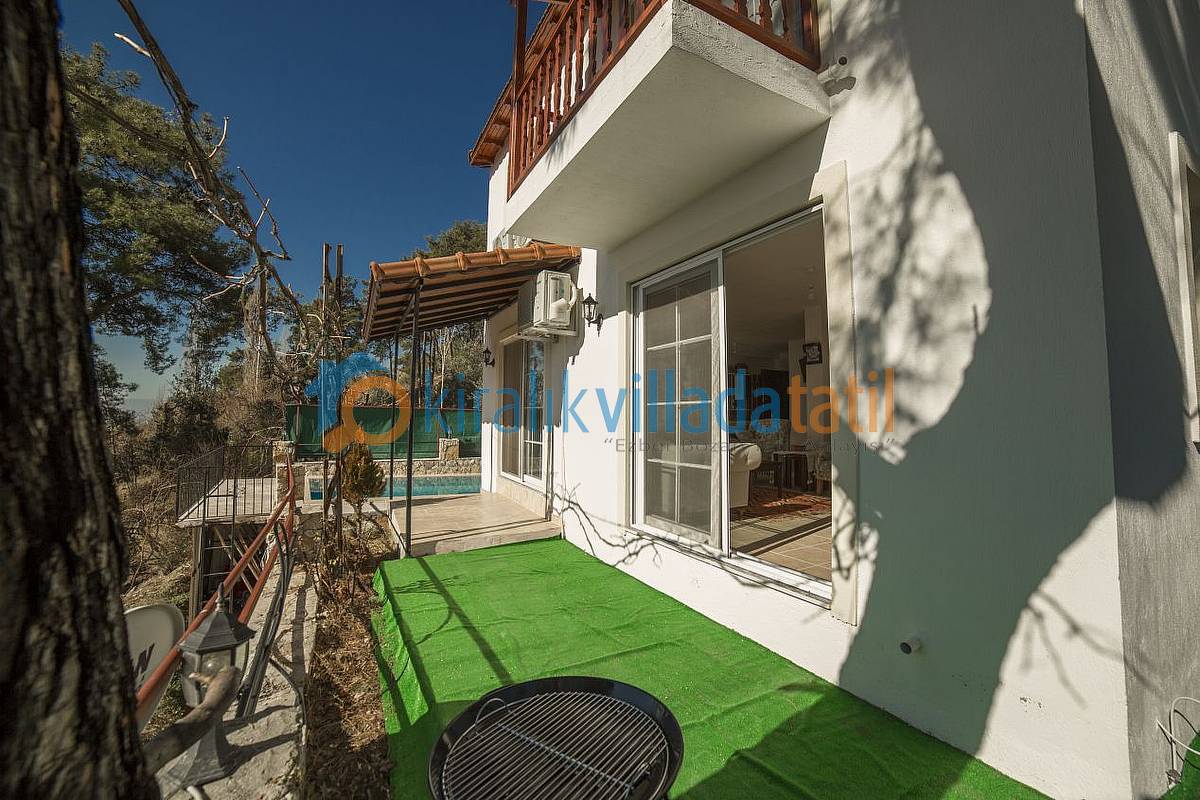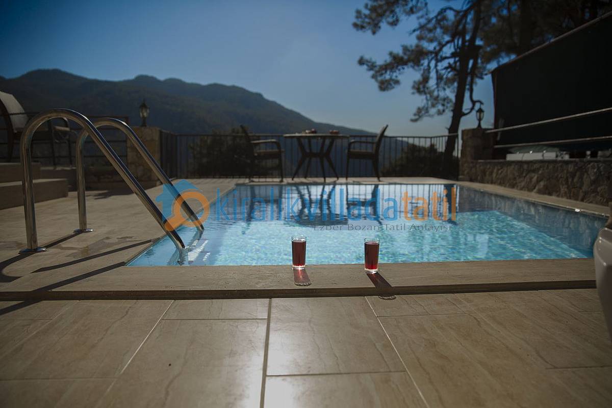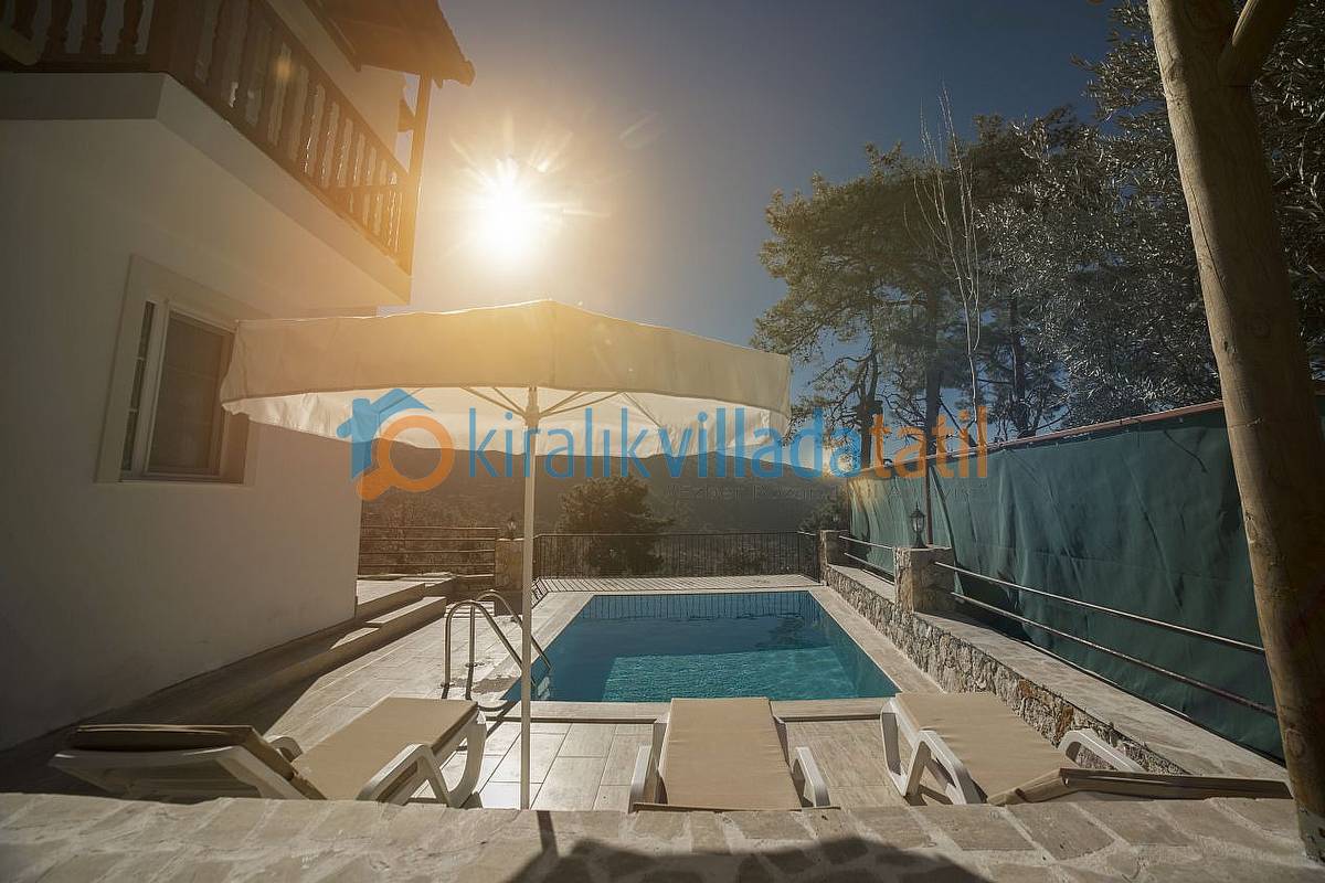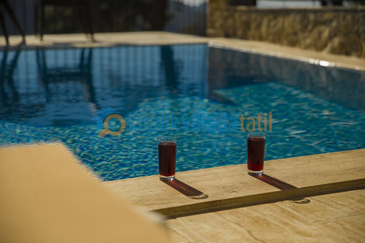 Yaklaşık 16 metrekarelik havuzun bulunduğu havuz terası perdeleri ile tamamen korunaklı hale getirilmiş olup, yakın çevresinde yapı yoktur. Dolayısı ile Muhafazakar ailelerimiz için ve balayı çiftlerimiz için ideal bir villadır. Villamızda özel Otopark, internet bağlantısı, salıncak, barbekü vs... mevcuttur.