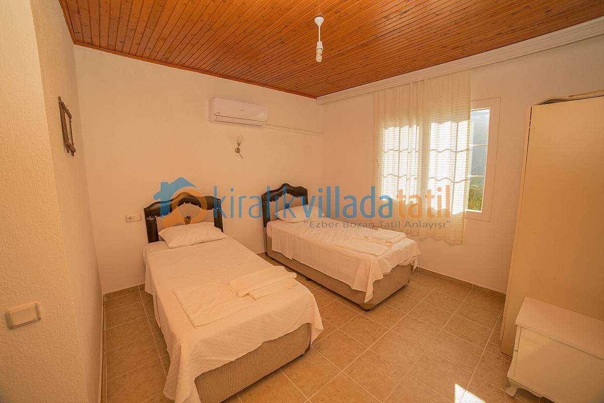 Kalkan İslamlar Köyü Pınarbaşı mevkiinde bulunan bu tatil villası, 2 süit (banyolu) yatak odası ile 4 kişilik kapasiteye sahiptir. Bir adet çift kişilik süit (banyolu) ebeveyn yatak odası ve 2 tek kişilik yatak bulunan banyolu genç yatak odasında ile küçük çekirdek ailelerin kalabileceği ideal bir villadır.
