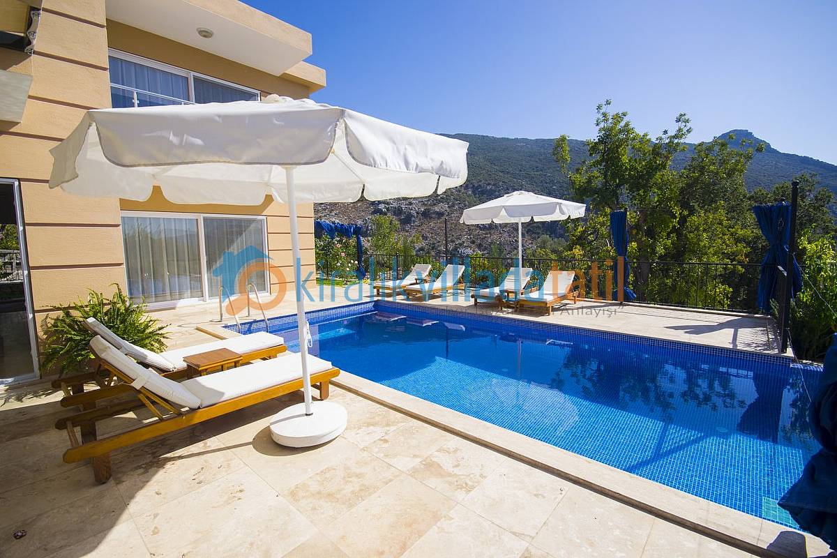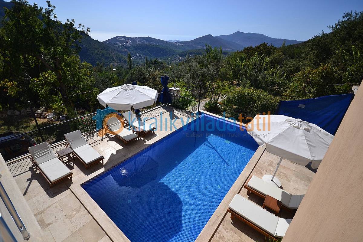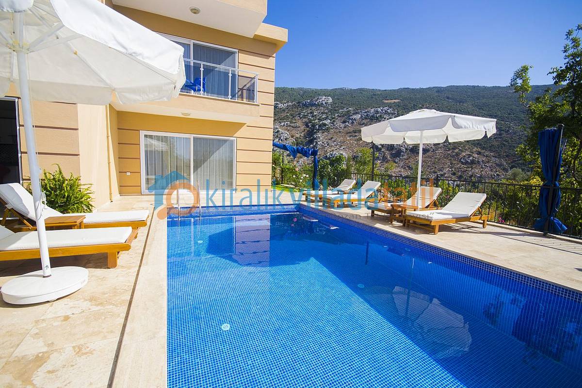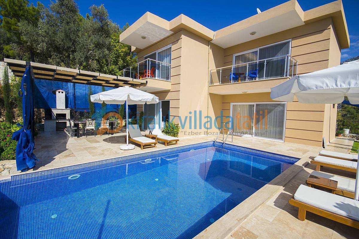 İslamlar Köyünün girişi olan Öz mevkiinde konumlandırılan villamız, deniz ve doğa manzarasına sahip villalar bölgesindedir. Kalkan şehir merkezine yaklaşık 5 km mesafede bulunmakta olup, günlük ihtiyaçlarınız için en yakın market yaklaşık 1 km mesafededir. Villamızda internet bağlantısı, özel açık otopark mevcuttur. Havuz terasında bulunan perdeler ile %100 korunaklı hale gelmektedir. Villamızda zemin katta bir çift kişilik ebeveyn yatak odası bulunmaktadır. 1.Katta ise bir adet çift kişilik ebeveyn yatak odası, bir adet te 2 adet tek kişilik yatağın bulunduğu genç yatak odası bulunmaktadır. Tüm yatak odaları banyolu ve üst kattaki odalara manzaralı ve balkonludur.
