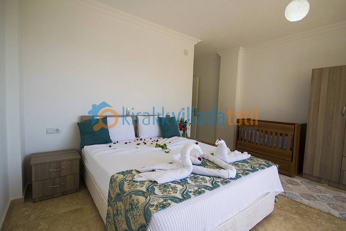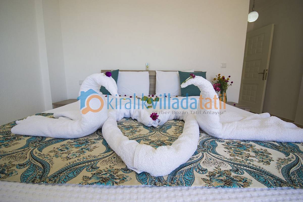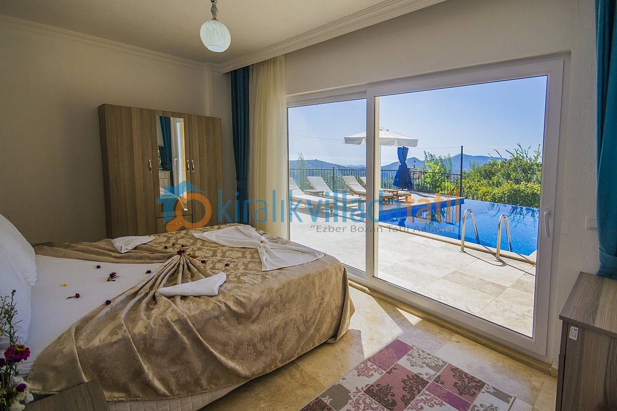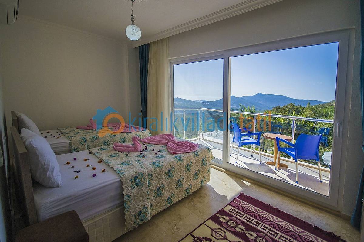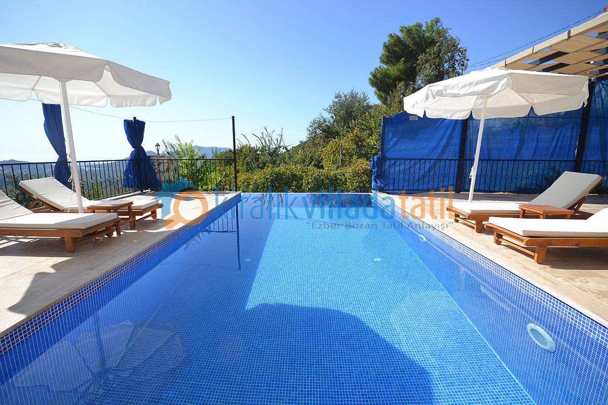 İslamlar Köyünün girişi olan Öz mevkiinde konumlandırılan villamız, deniz ve doğa manzarasına sahip villalar bölgesindedir. Kalkan şehir merkezine yaklaşık 5 km mesafede bulunmakta olup, günlük ihtiyaçlarınız için en yakın market yaklaşık 1 km mesafededir. Villamızda internet bağlantısı, özel açık otopark mevcuttur. Havuz terasında bulunan perdeler ile %100 korunaklı hale gelmektedir. Villamızda zemin katta bir çift kişilik ebeveyn yatak odası bulunmaktadır. 1.Katta ise bir adet çift kişilik ebeveyn yatak odası, bir adet te 2 adet tek kişilik yatağın bulunduğu genç yatak odası bulunmaktadır. Tüm yatak odaları banyolu ve üst kattaki odalara manzaralı ve balkonludur.