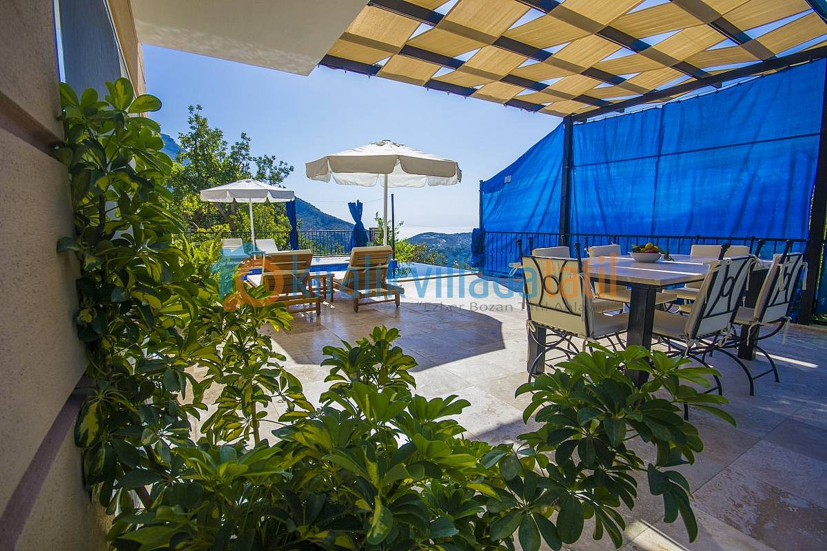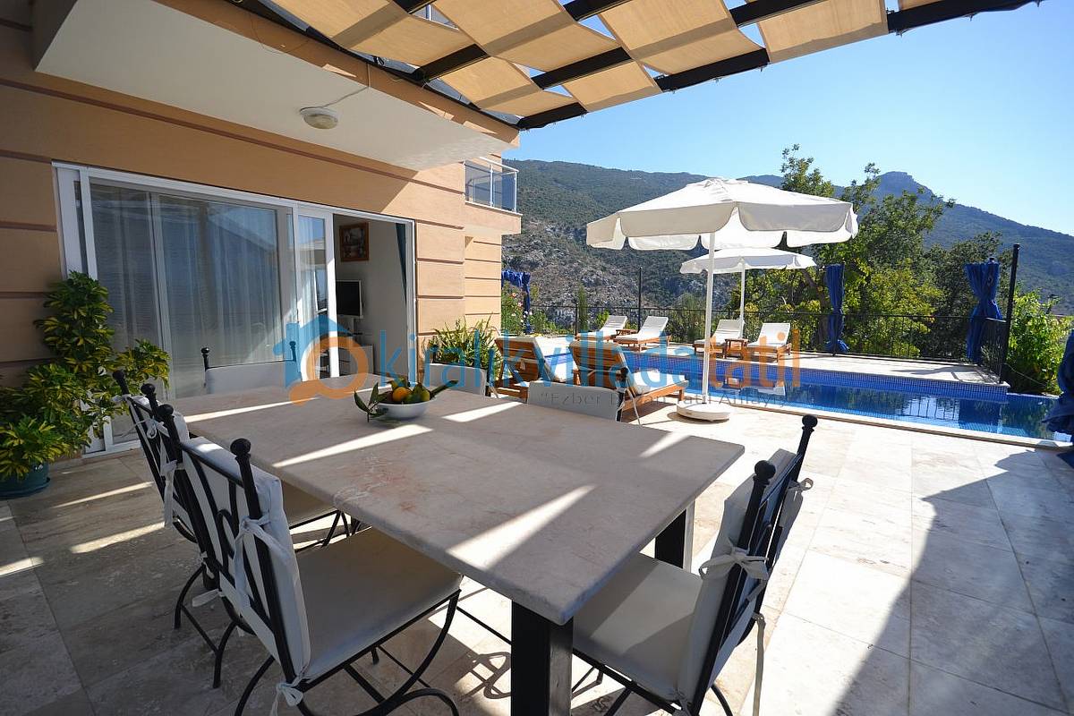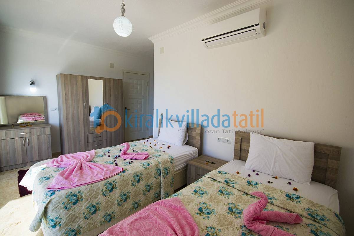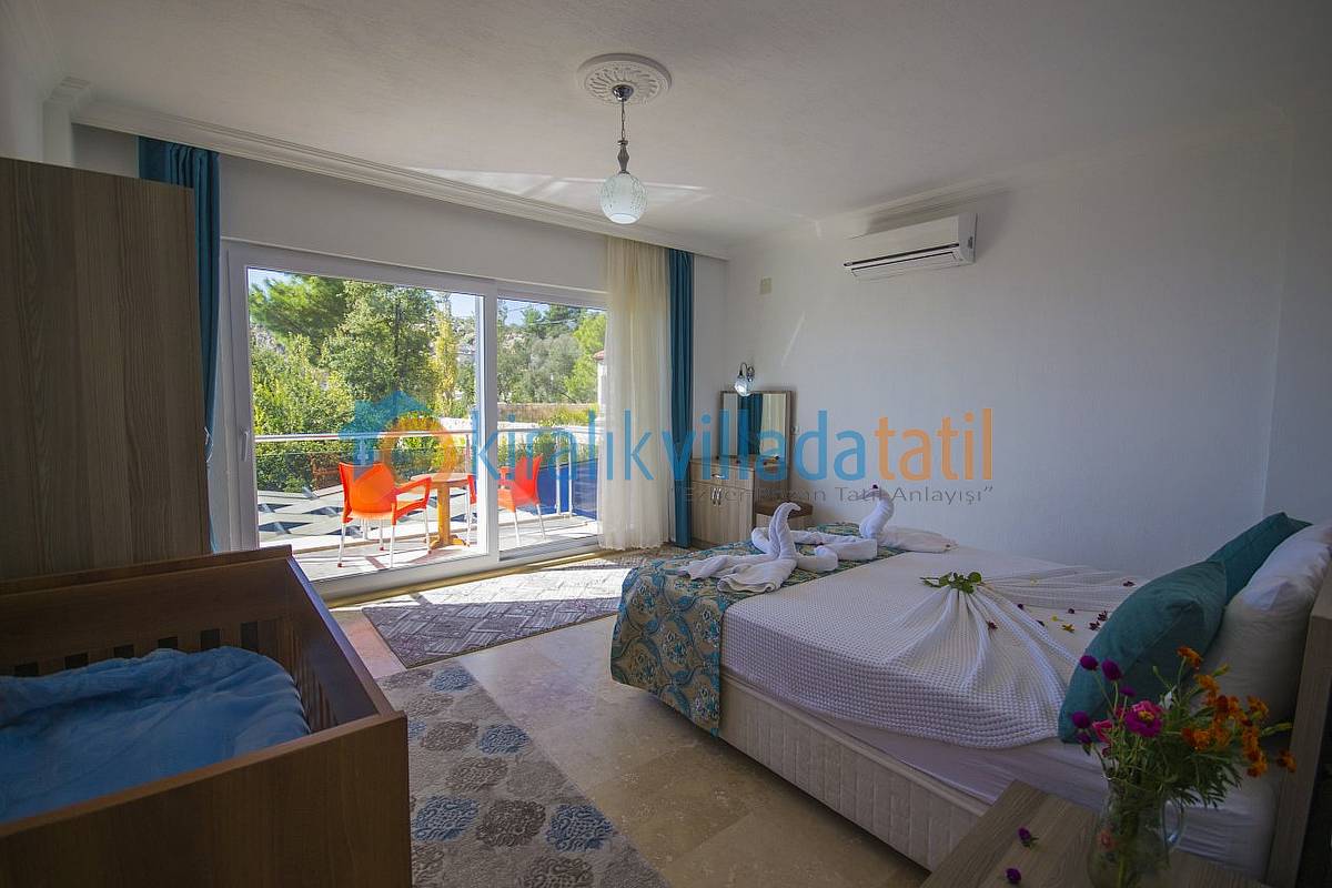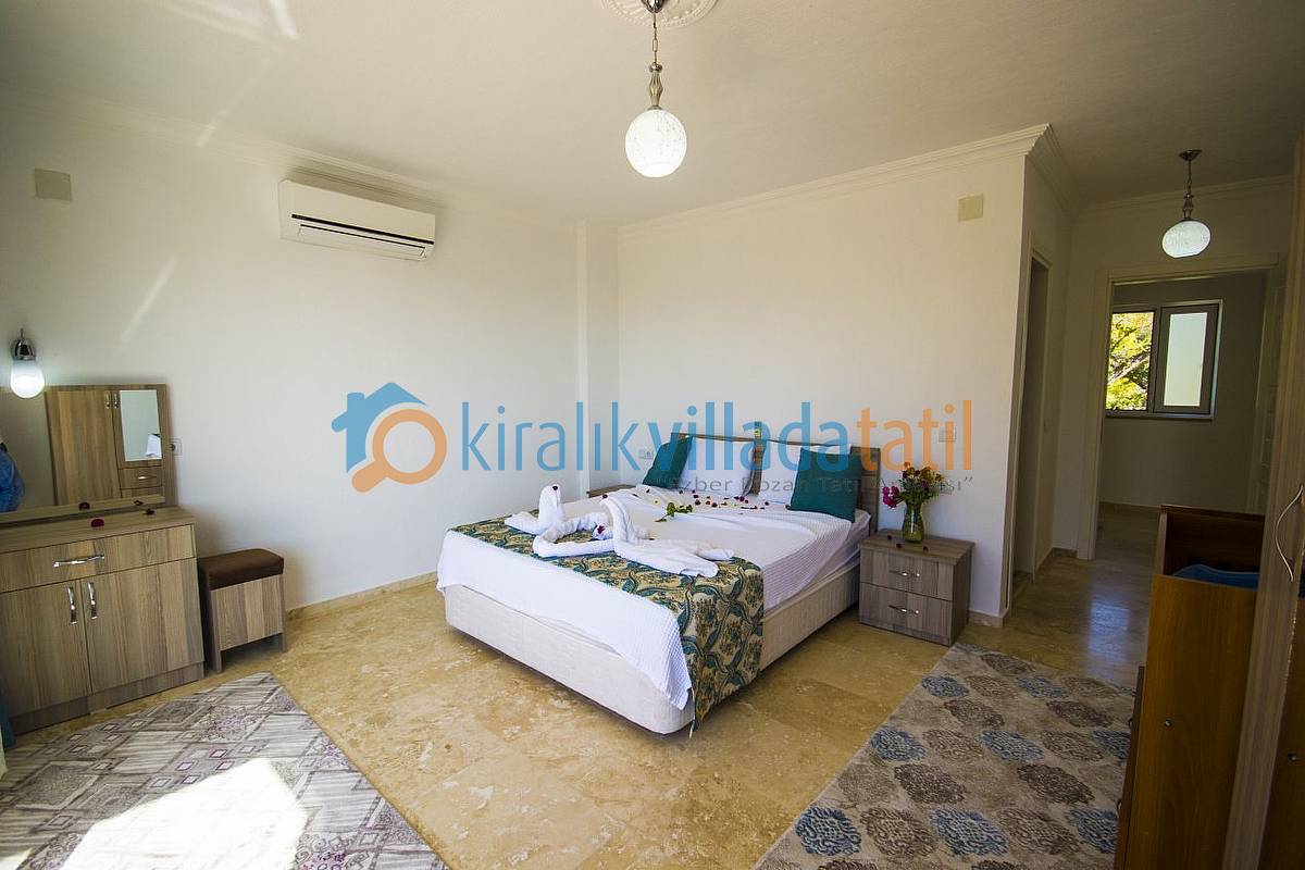 Kalkan İslamlar köyü Öz mevkiinde bulunan bu korunaklı tatil villamız, 3 süit (banyolu) yatak odası ile 6 kişilik kapasiteye sahiptir.