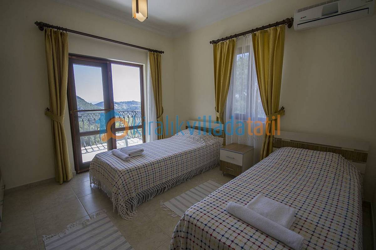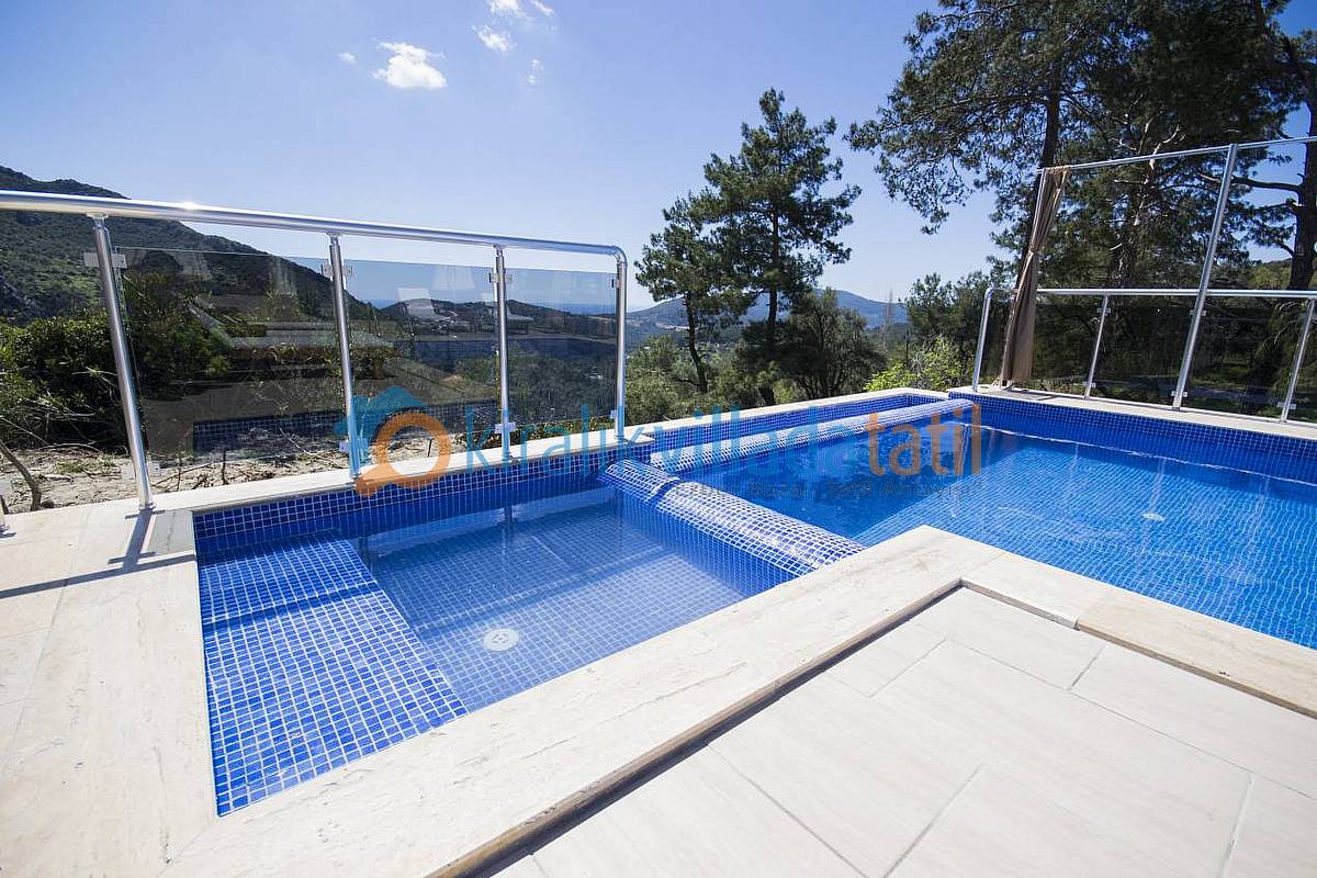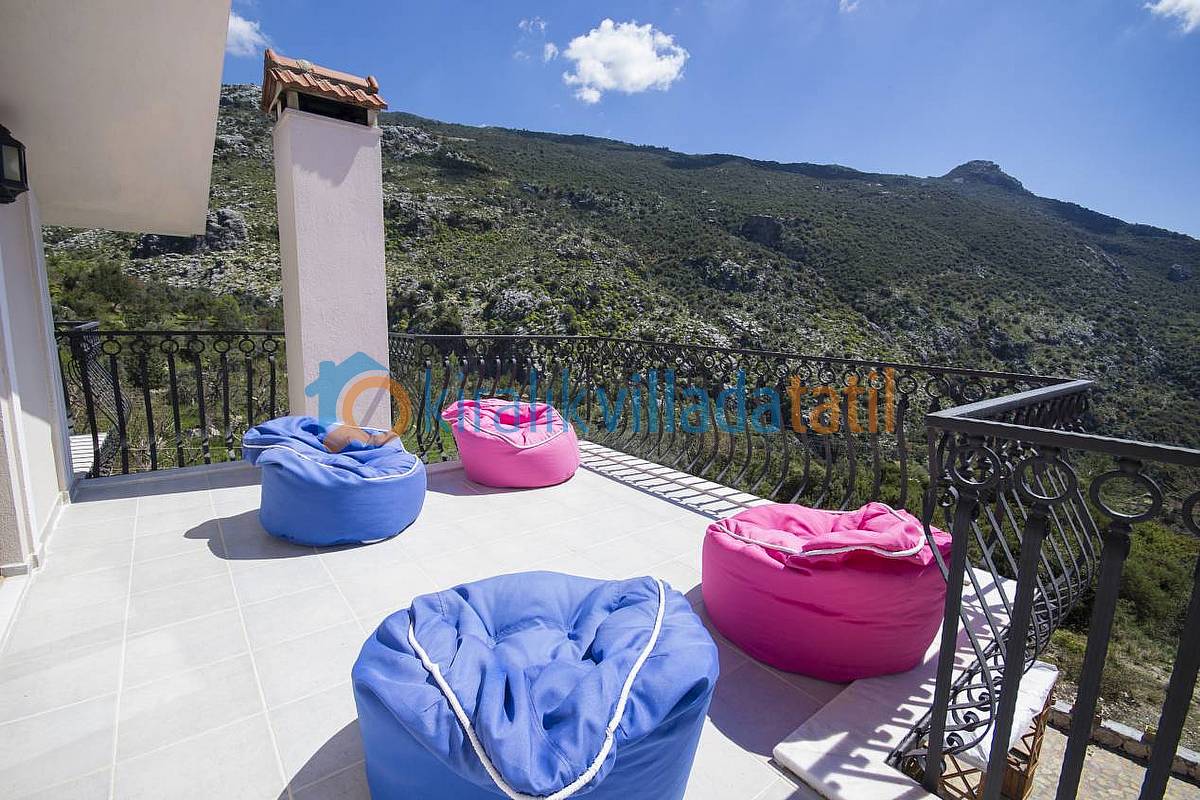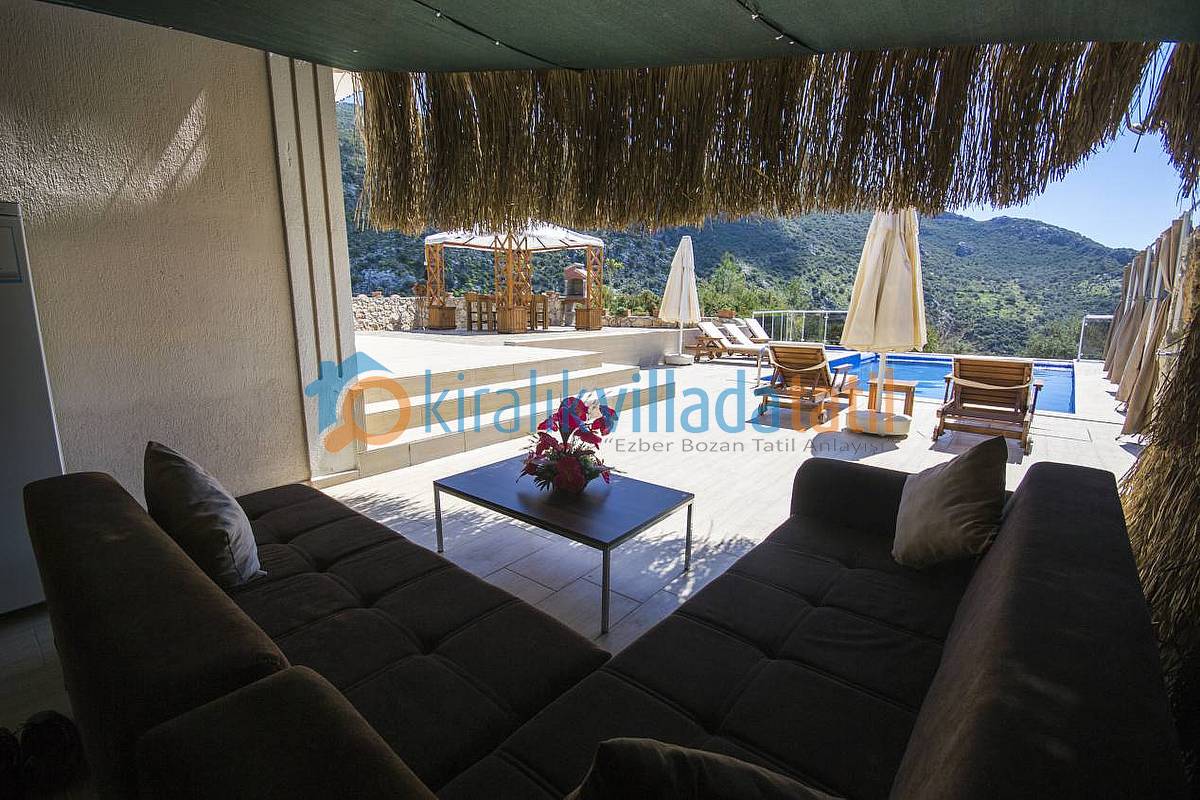 Kalkan İslamlar Köyü girişinde Öz Mahallesinde bulunan bu muhafazakar villa, 4 yatak odası ile 8 kişilik kapasiteye sahiptir. 2 suit yatak odası ve jakuzili ana yatak odası bulunmaktadır. Şehir merkezine araç ile 10 dakikalık mesafededir. Oturma odasındaki kanepe ile kapasite 9 kişiye kadar çıkabilir. Villamızın giriş kısmında ortak kullanım WC ve banyo bulunmaktadır. Villamızın etraftan çok az görünürlüğü vardır. ancak dilerseniz perdeler ile tamamen kapatabilirsiniz. Muhafazakar aileler ve gözden uzak tatil yapmak isteyen ailelerimiz için uygun villalardan biridir. Gözlerden uzak havuz terası gizliliğe önem veren müşterilerimiz için ideal bir güneşlenme alanıdır. Havuz Terası çevresinde perde ile kapatma mevcuttur.