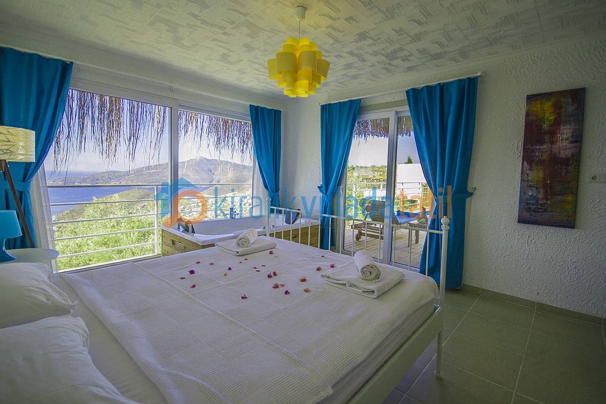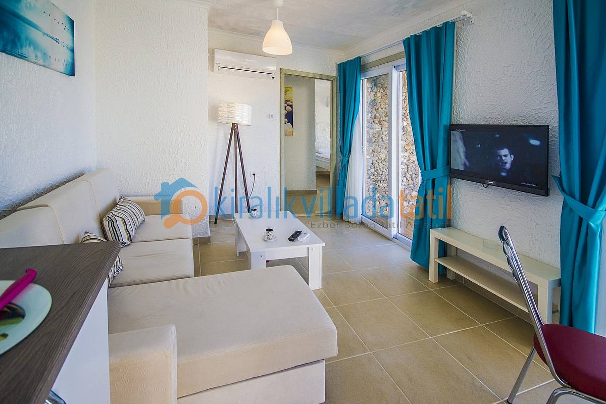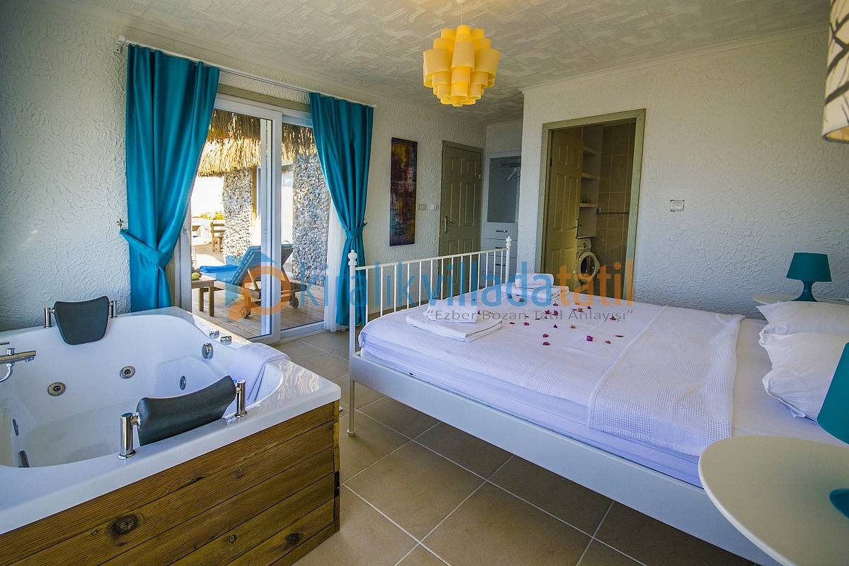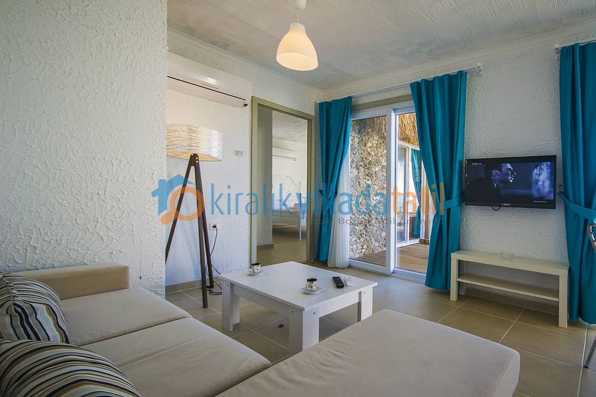 Oturma odası; bir köşe kanepe, sehpa ve LCD Tv’den oluşmaktadır. İnternet bağlantısı ortak olarak sağlanacaktır. Yatak odalarında çift kişilik yatak, 2 komidin, elbise dolabı, makyaj masası ve jakuzi bulunacaktır. 2016 yılı Haziran ayından itibaren ilk defa kiraya çıkacak olan villamızın inşaat işlemleri halen devam etmekte olup sitemizdeki mevcut resimler temsili 3 boyutlu proje resimleridir. 01 Haziran 2016 itibari ile hazır olması planlanan villalarımızın gerçek resimleri aşama aşama bir güncellenecektir. Bu villa ile aynı konsepte sahip olan KAV143-2 ve KAV143-1 kodlu villalarımıza bakarak genel olarak benzer olacak konsepti ve manzarayı detaylı olarak görebilirsiniz.