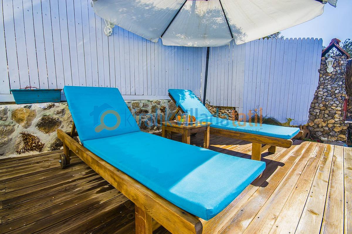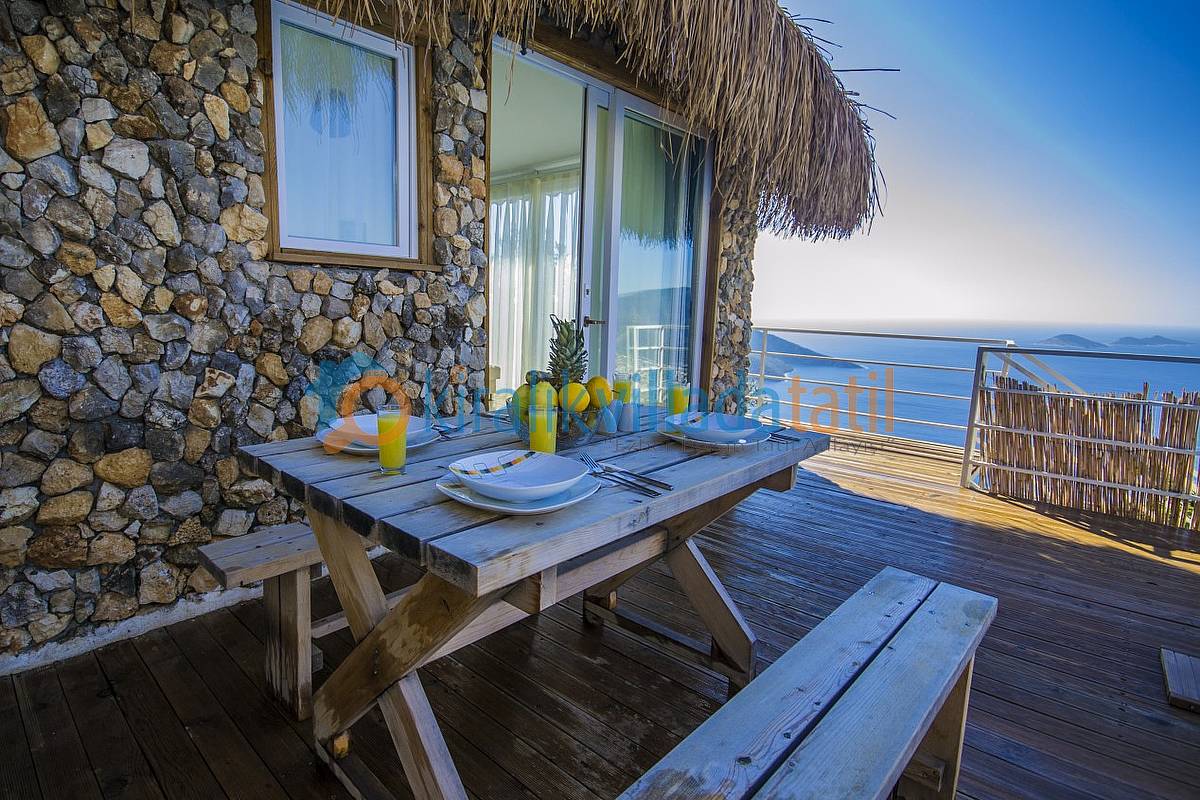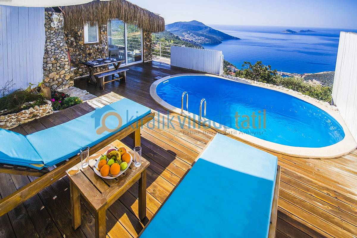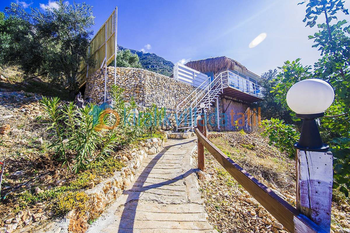 Sadece Kiralık Villada Tatil.com tarafından kiralamaya çıkarılan bu villamız Kalkan koyunun en güzel manzarasına sahip olan konumu ile doğa ile bütünleşmiş ve etraftan görünmeyen özelliğe sahiptir. Demir, ahşap ve taş yapısı ile estetik bir görünüme sahip villamıza, aracınızı otoparkta bıraktıktan sonra yaklaşık 60 basamaktan oluşan yeşiller içinde manzaralı bir patika-merdiven yoldan çıkış yapılmaktadır. Dolayısı ile yaşlı-engelli misafirlerimiz için pek uygun bir villa değildir.