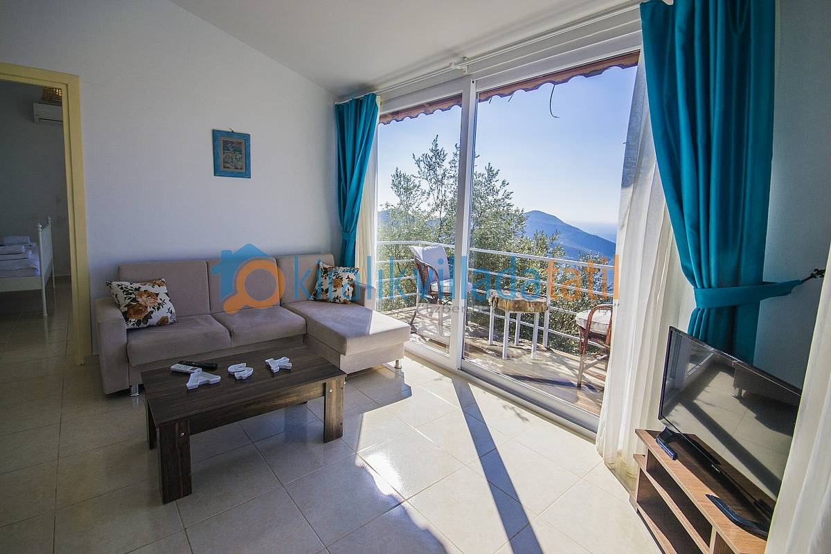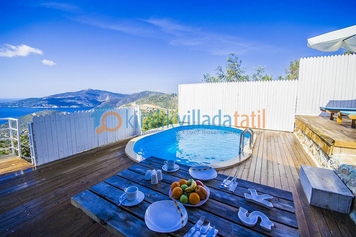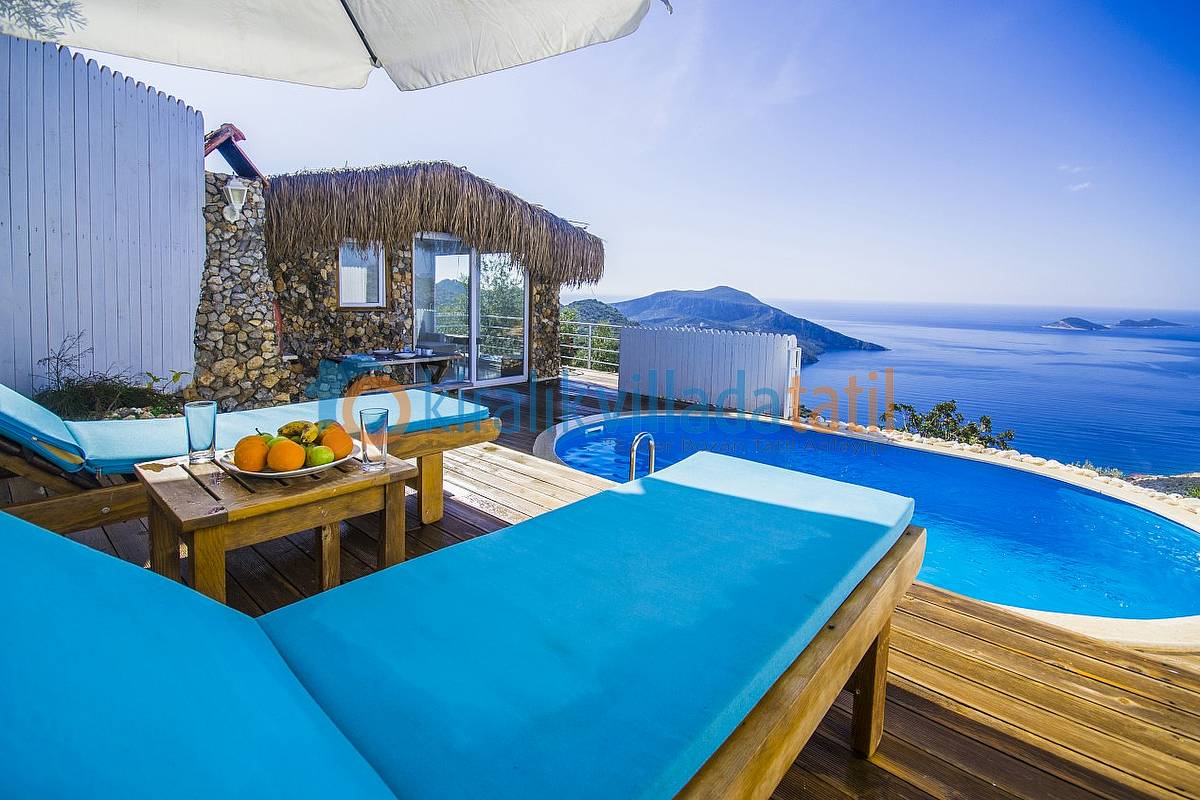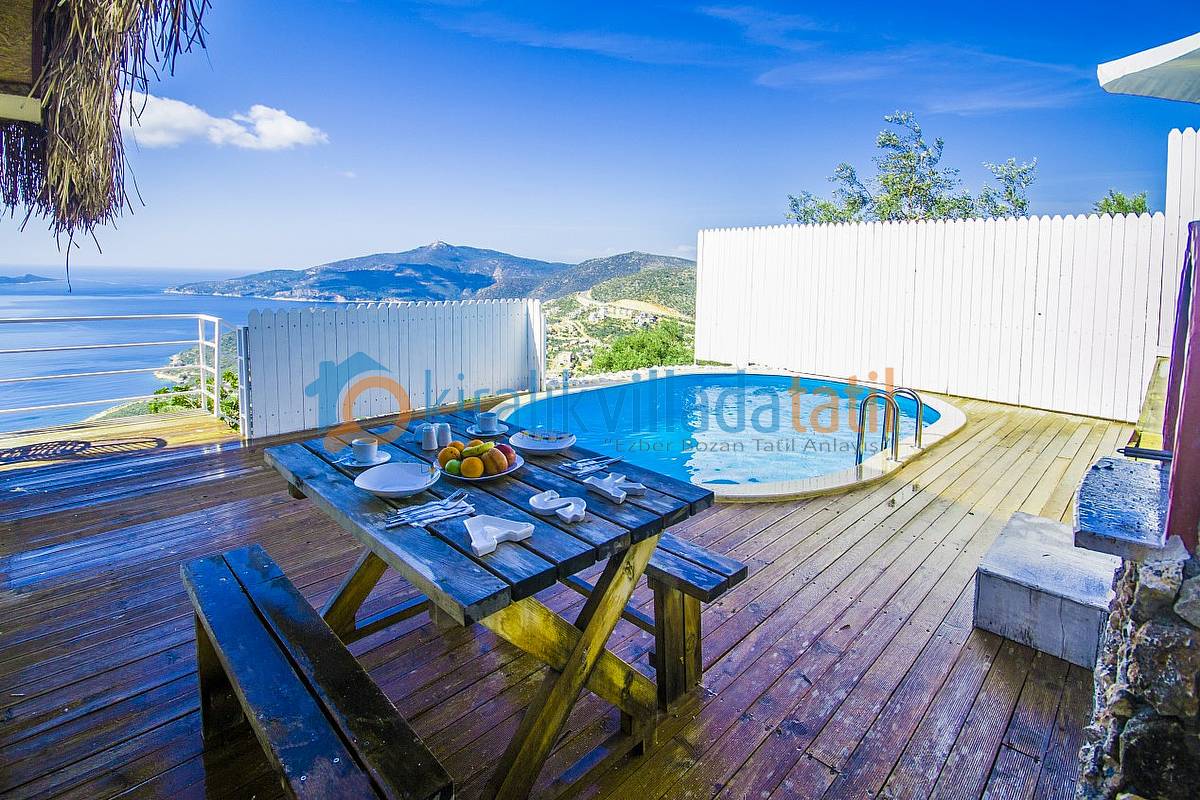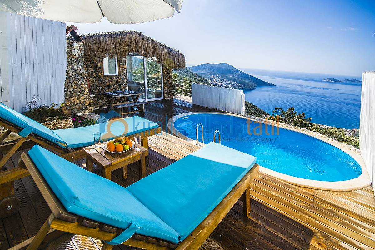 Sadece Kiralık Villada Tatil.com tarafından kiralamaya çıkarılan bu villamız Kalkan koyunun en güzel manzarasına sahip olan konumu ile doğa ile bütünleşmiş ve etraftan görünmeyen özelliğe sahiptir. Demir, ahşap ve taş yapısı ile estetik bir görünüme sahip villamıza, aracınızı otoparkta bıraktıktan sonra yaklaşık 60 basamaktan oluşan yeşiller içinde manzaralı bir patika-merdiven yoldan çıkış yapılmaktadır. Dolayısı ile yaşlı-engelli misafirlerimiz için pek uygun bir villa değildir.
