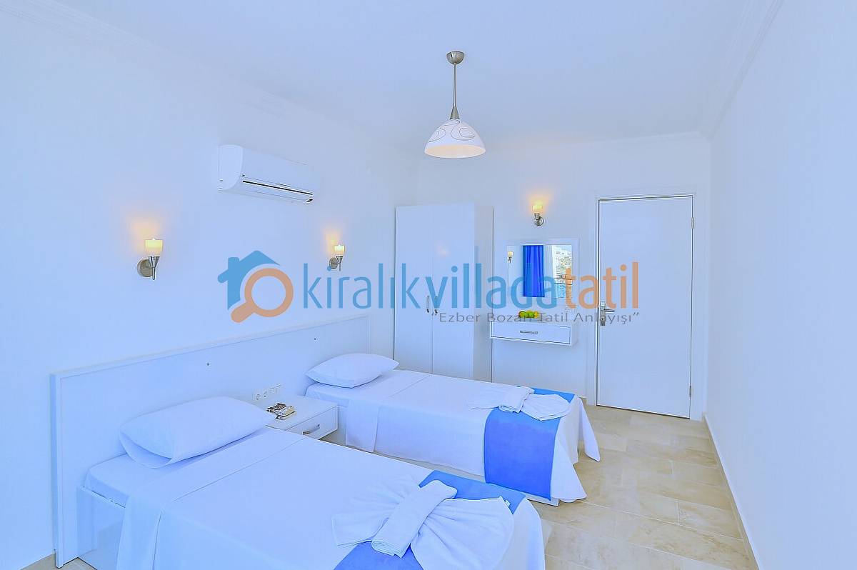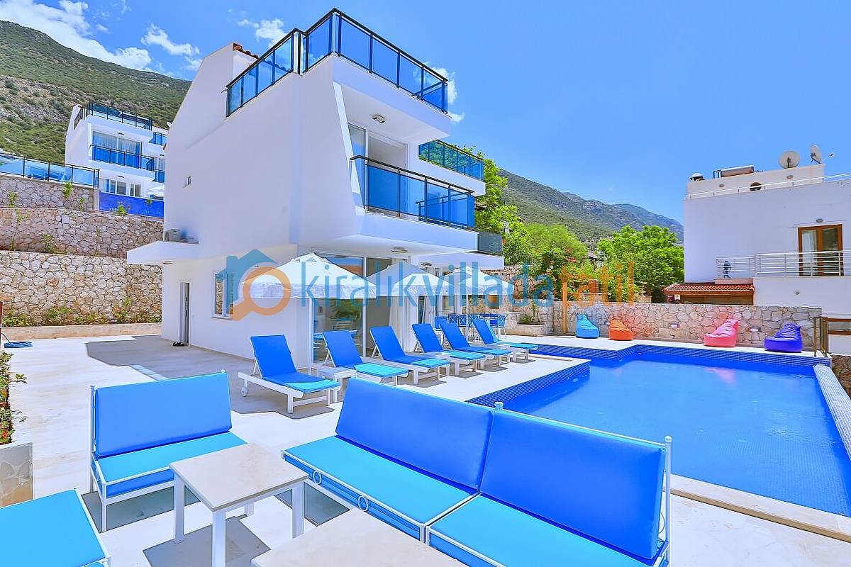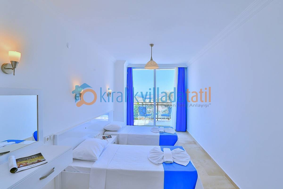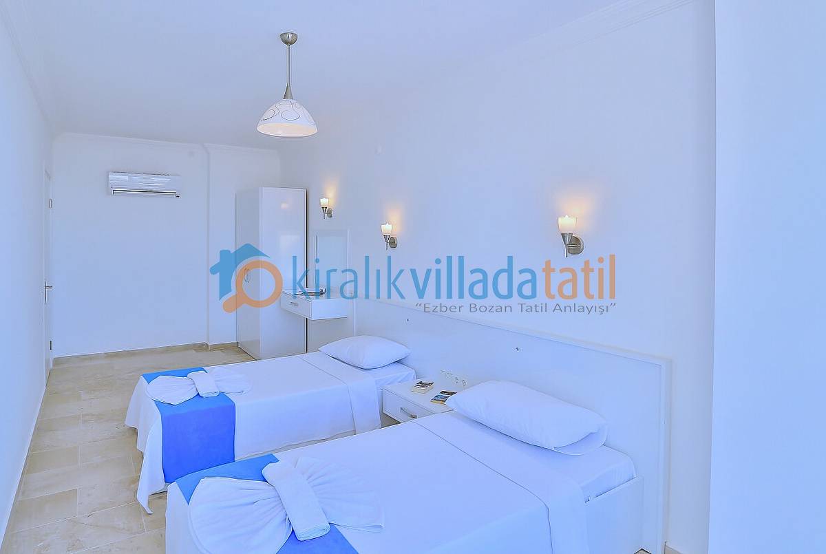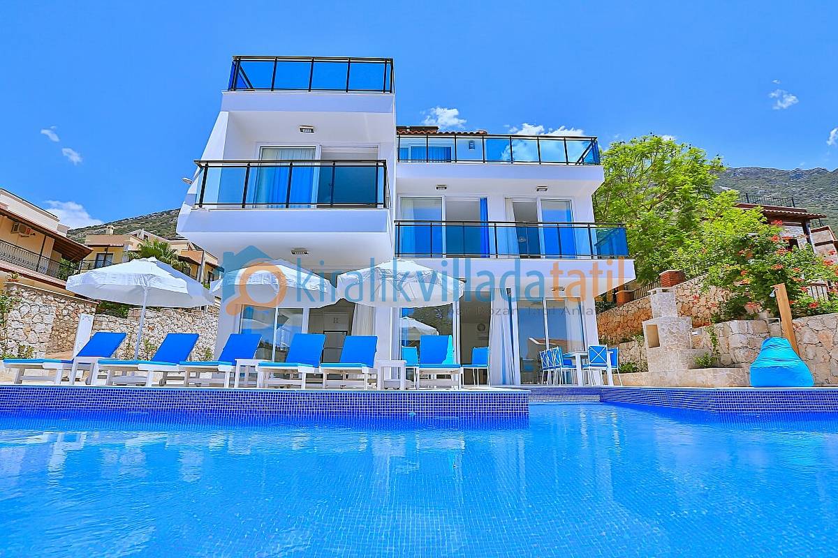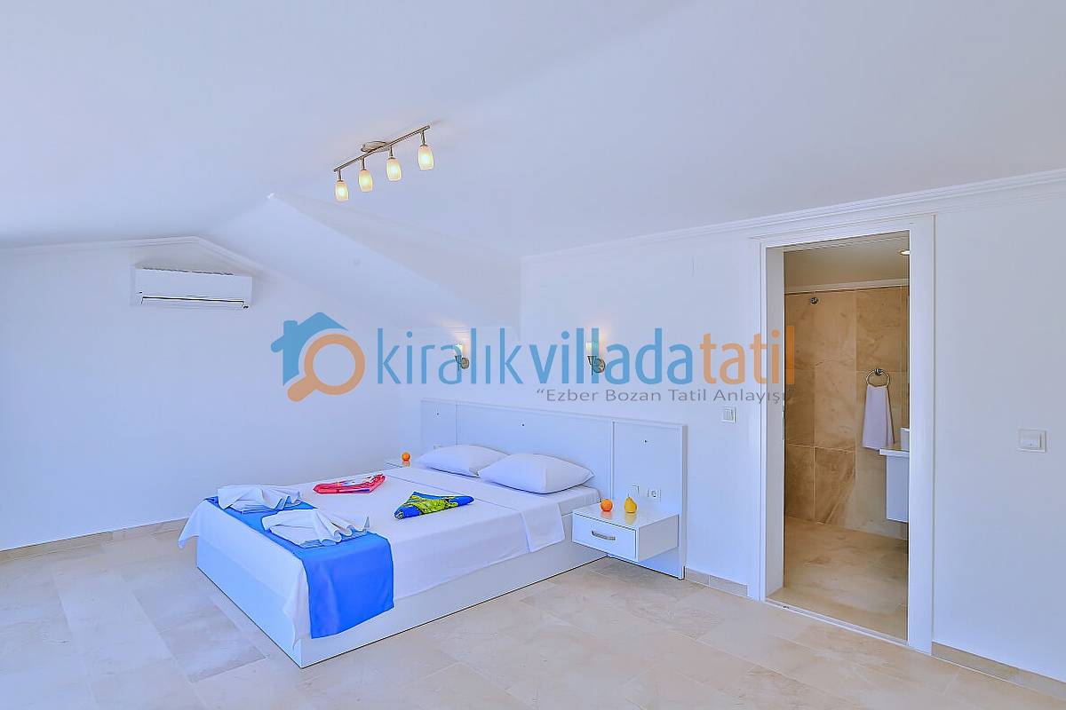 Kalkan Kızıltaş mevkiinde kompleks içinde bulunan bu lüks tatil villası, 4 süit (banyolu) yatak odası ile 8 kişilik kapasiteye sahiptir. 2017 yılında ilk defa kiraya çıkacak olan villamızda 2 adet çift kişilik yatak ve 4 adette tek kişilik yatak bulunmaktadır.