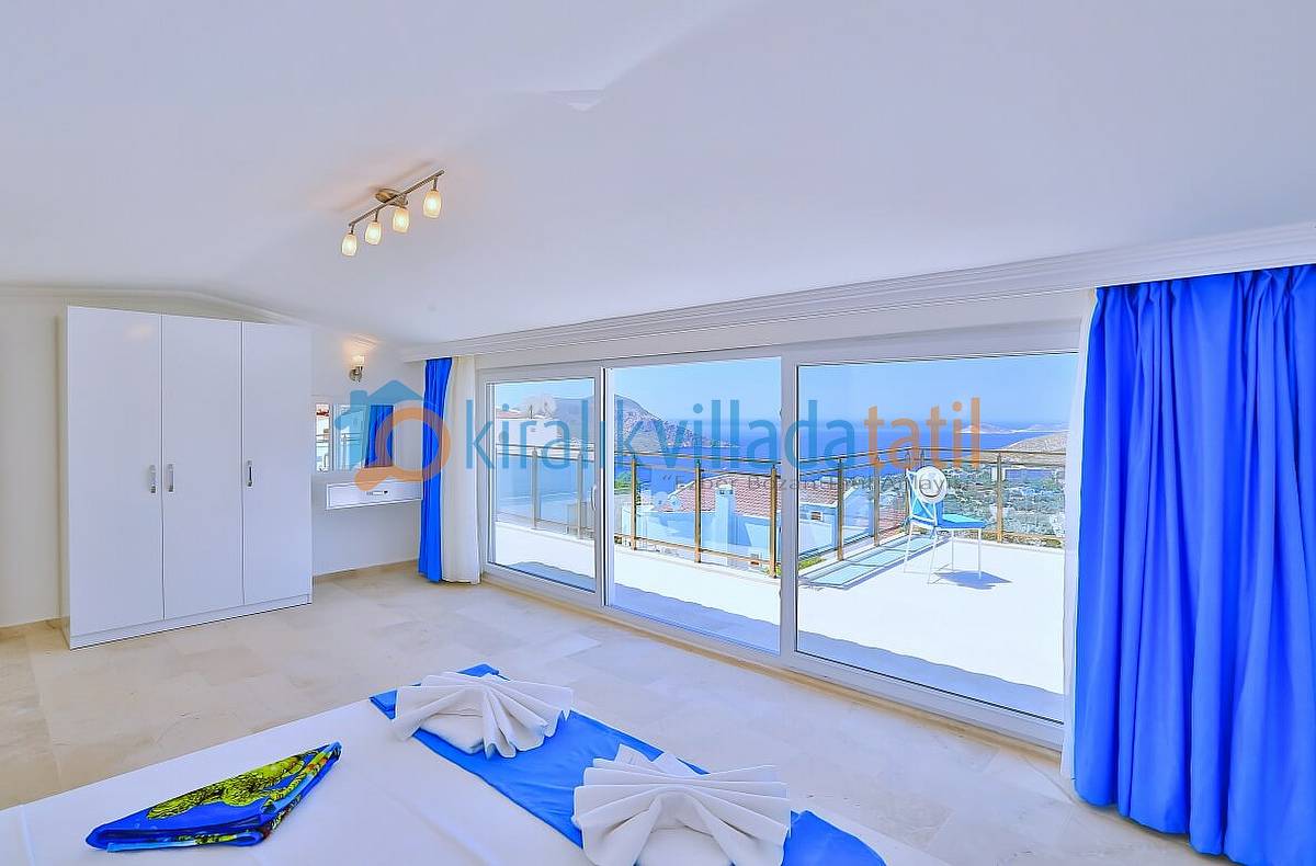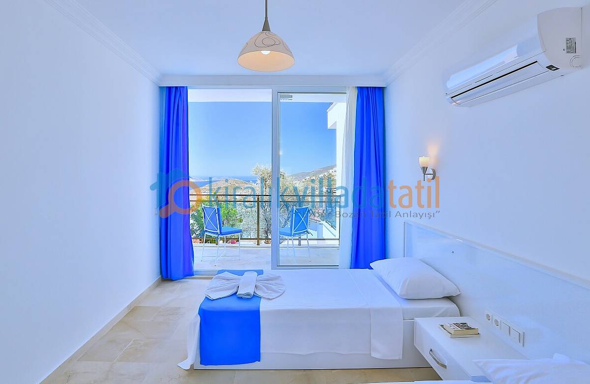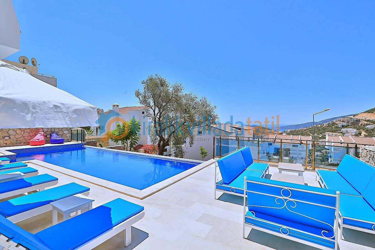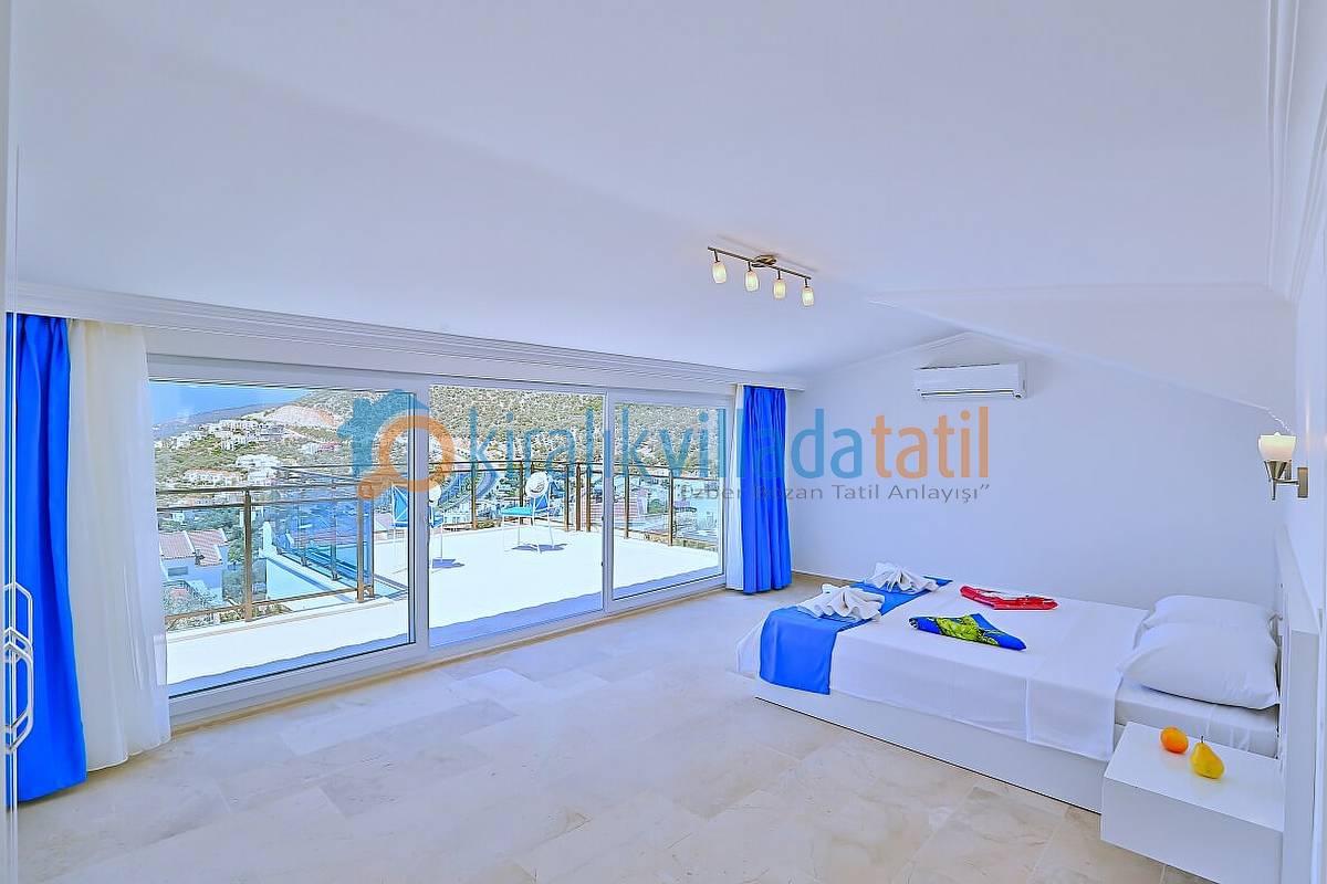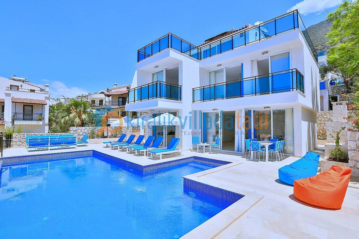 Kalkan Kızıltaş mevkiinde kompleks içinde bulunan bu lüks tatil villası, 4 süit (banyolu) yatak odası ile 8 kişilik kapasiteye sahiptir. 2017 yılında ilk defa kiraya çıkacak olan villamızda 2 adet çift kişilik yatak ve 4 adette tek kişilik yatak bulunmaktadır.