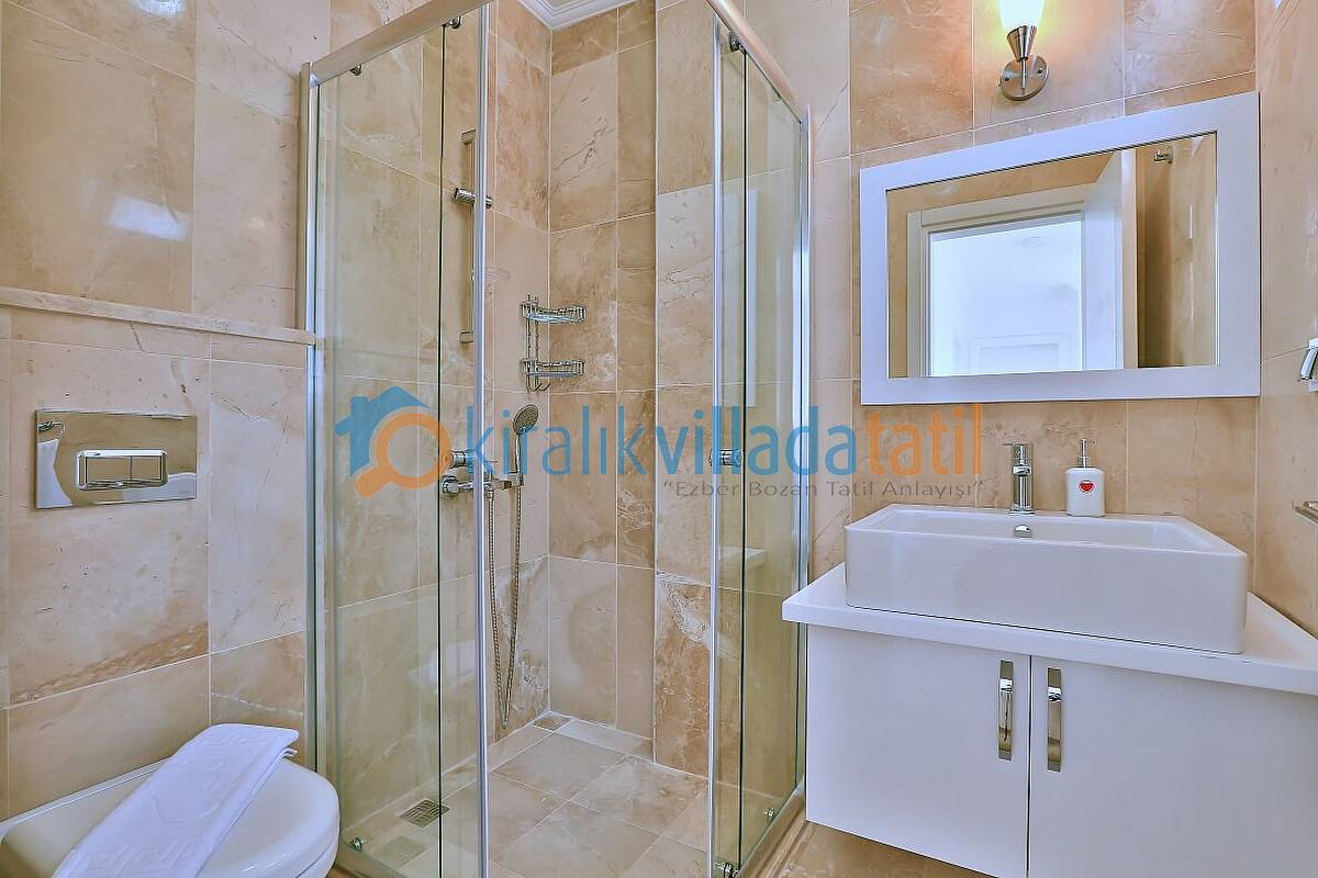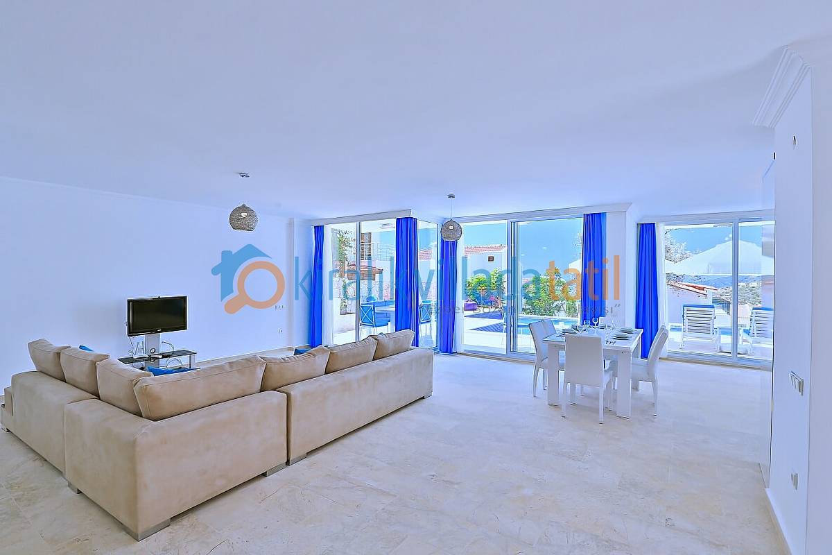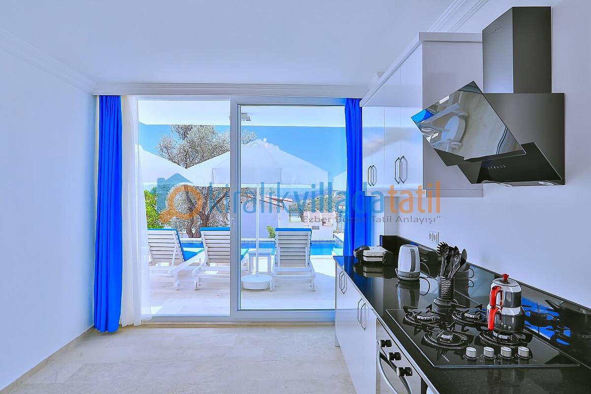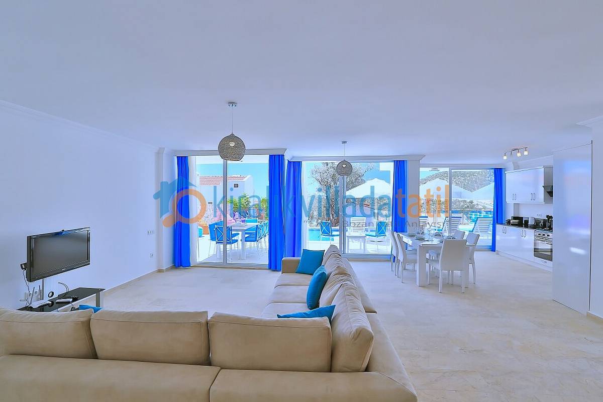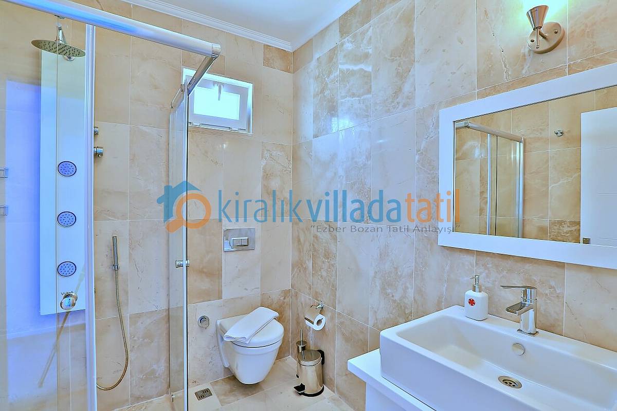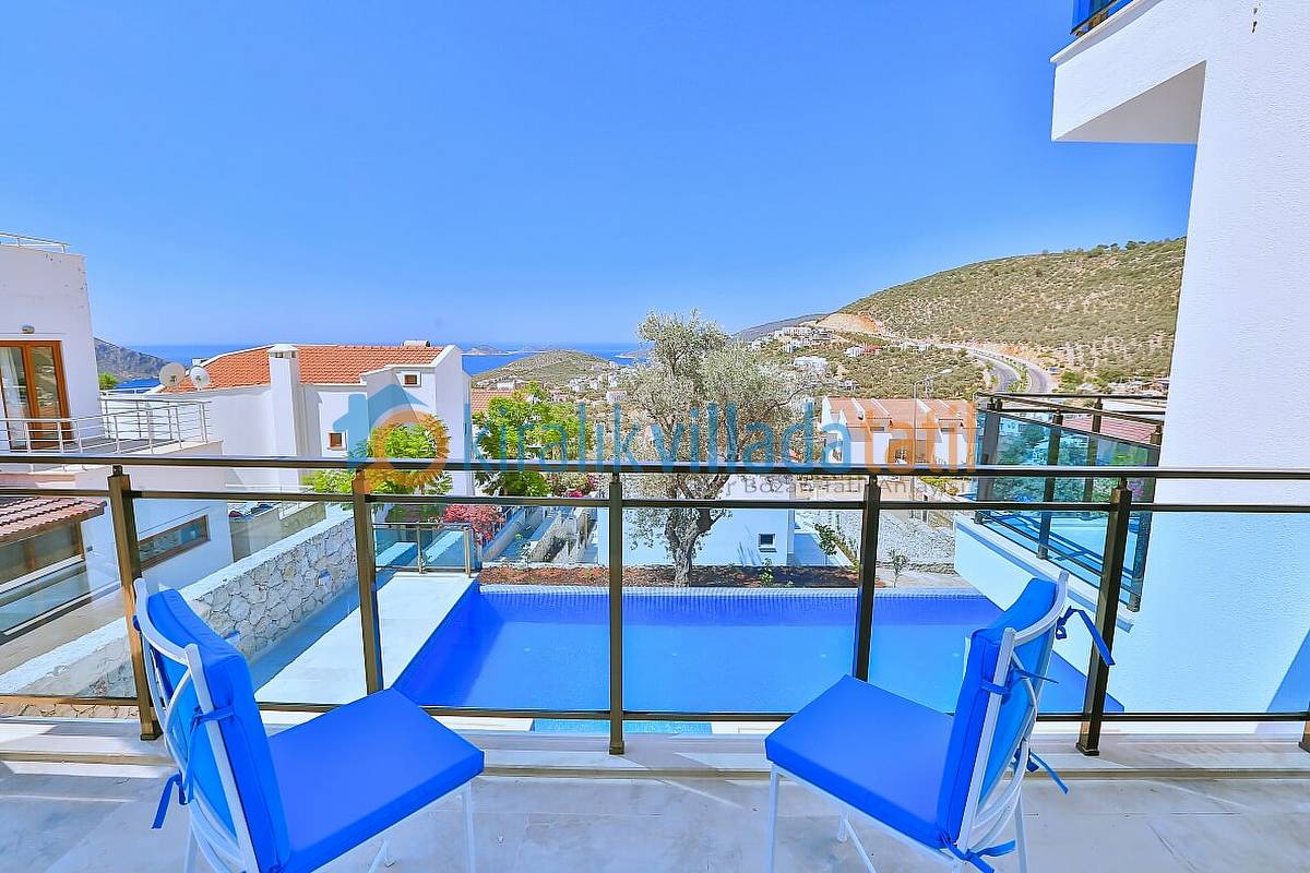 Kalkan Kızıltaş mevkiinde kompleks içinde bulunan bu lüks tatil villası, 4 süit (banyolu) yatak odası ile 8 kişilik kapasiteye sahiptir. 2017 yılında ilk defa kiraya çıkacak olan villamızda 2 adet çift kişilik yatak ve 4 adette tek kişilik yatak bulunmaktadır.