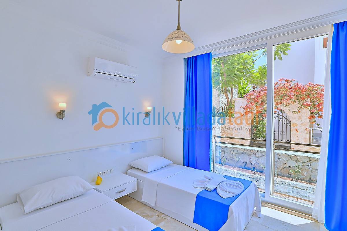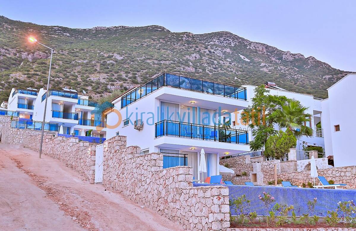 Kalkan Kızıltaş mevkiinde villa kompleksi içinde bulunan bu lüks tatil villası, 4 banyolu (süit) yatak odası ile 8 kişilik kapasiteye sahiptir. 2017 yılında ilk defa kiraya çıkacak olan villamızda 2 adet çift kişilik yatak ve 4 adette tek kişilik yatak bulunmaktadır.