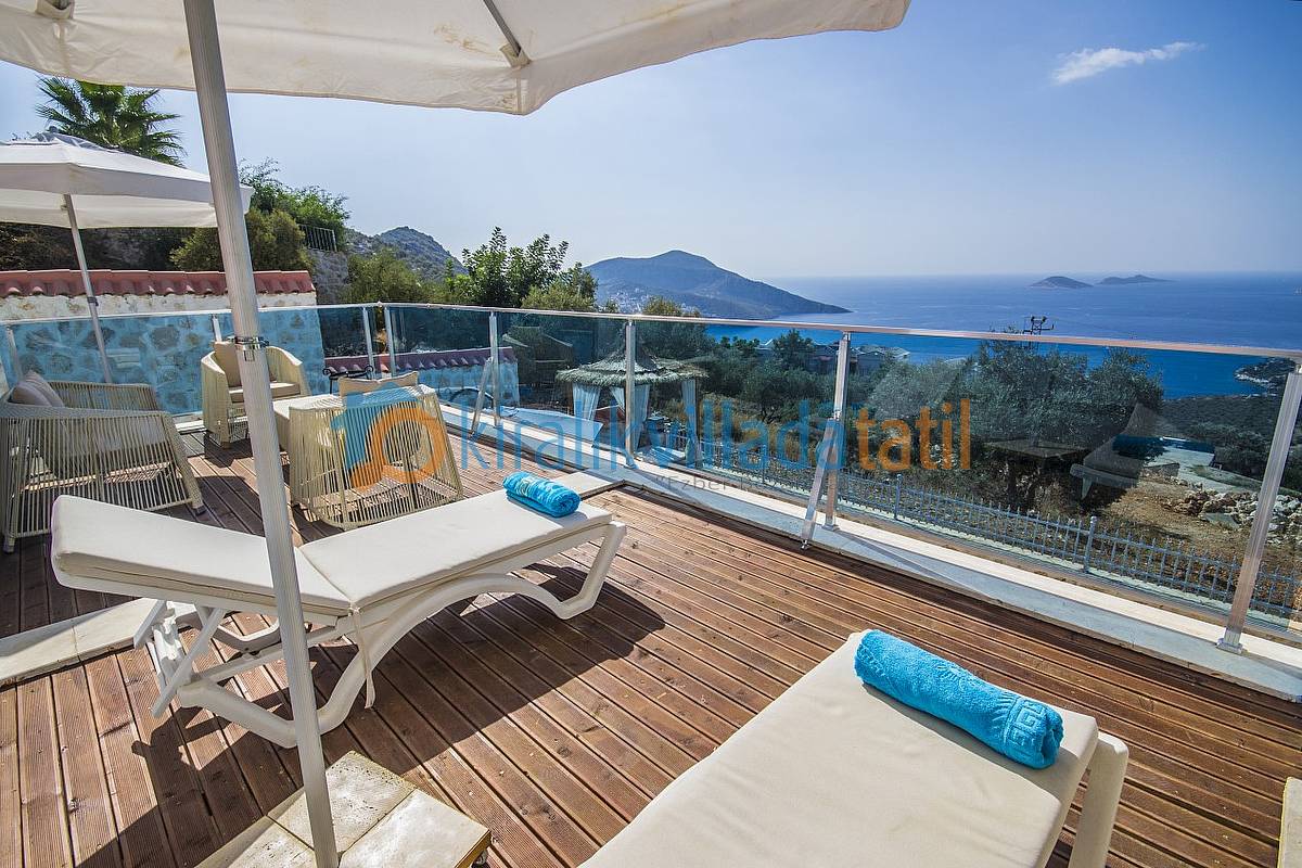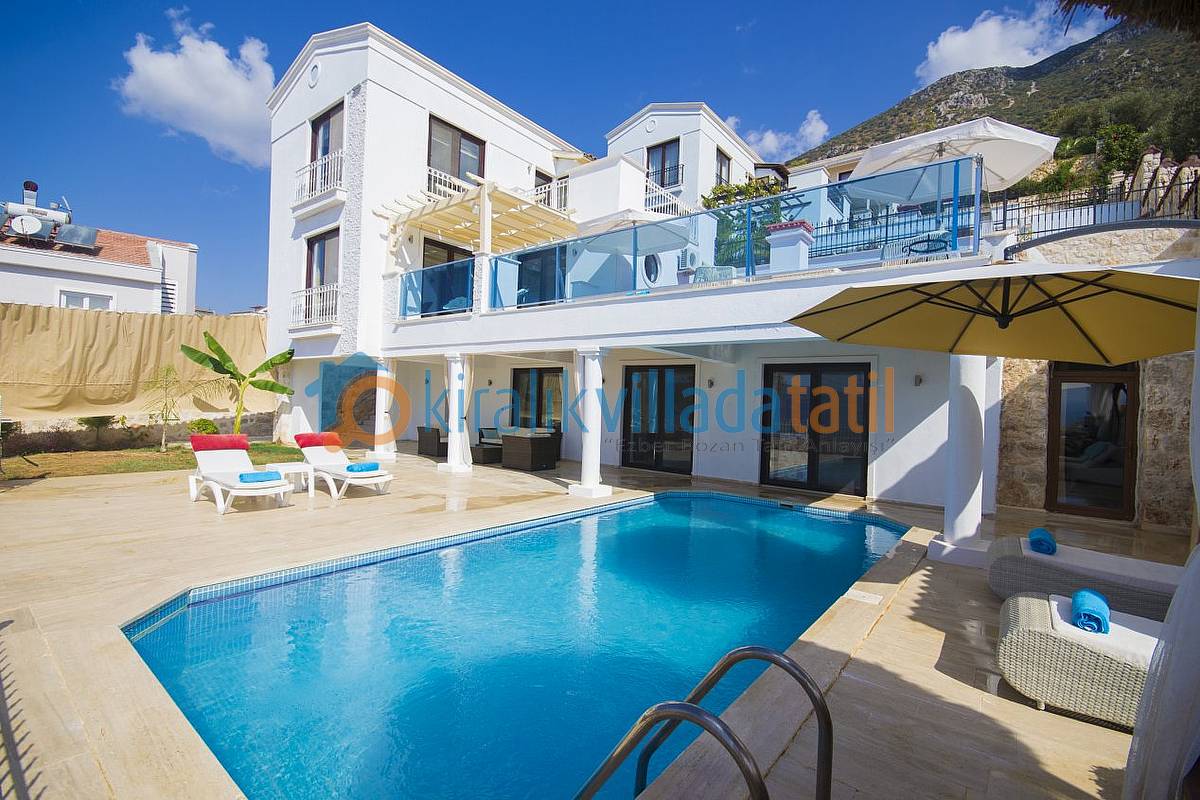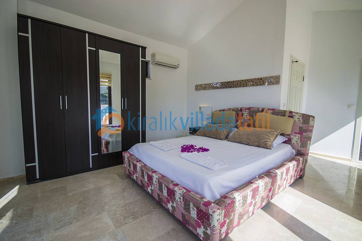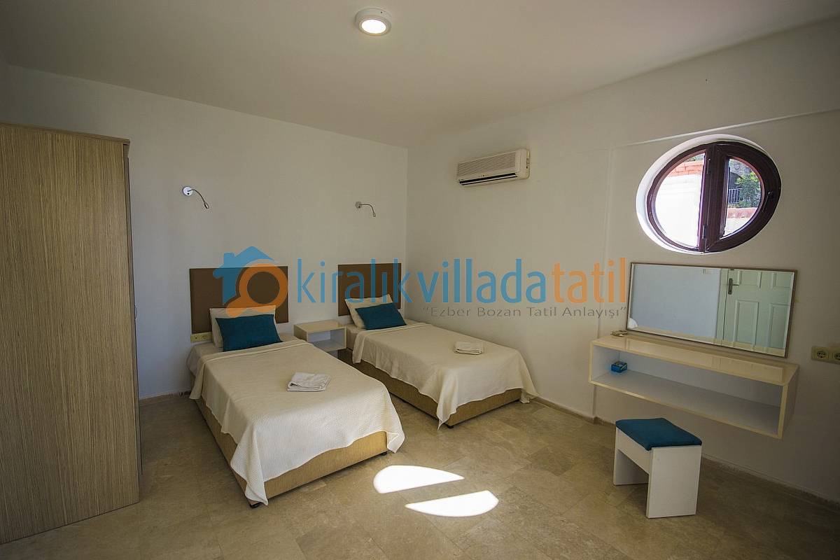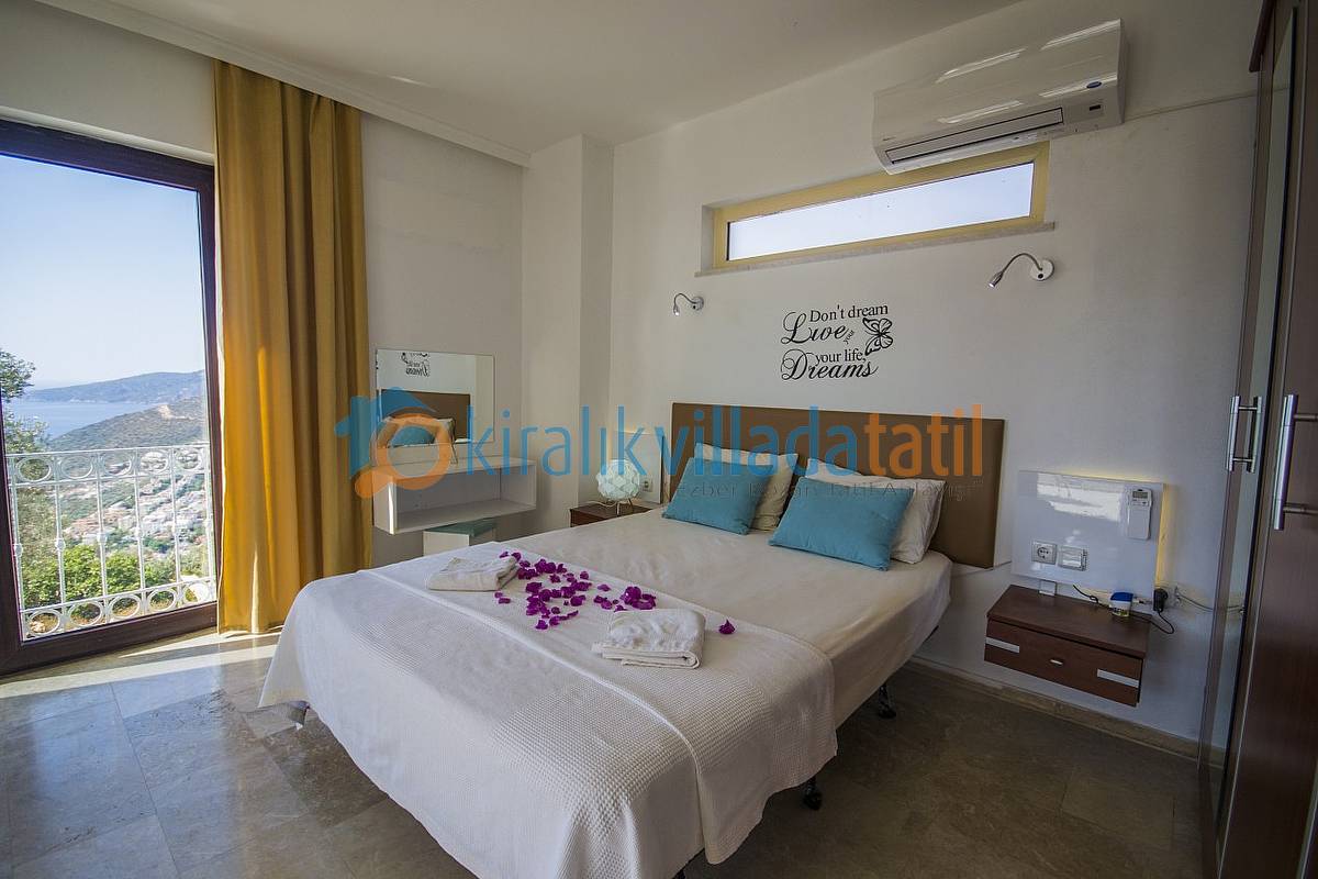 Kalkan şehir merkezine yakın bir konumda olan Kızıltaş mevkiinde bulunan bu lüks tatil villamız, 4 yatak odası ile 7 kişilik kapasiteye sahiptir. Villamızdaki çatı süiti haricindeki diğer odalar ortak banyo wc kullanmaktadır. Toplamda 3 adet banyo WC bulunmaktadır