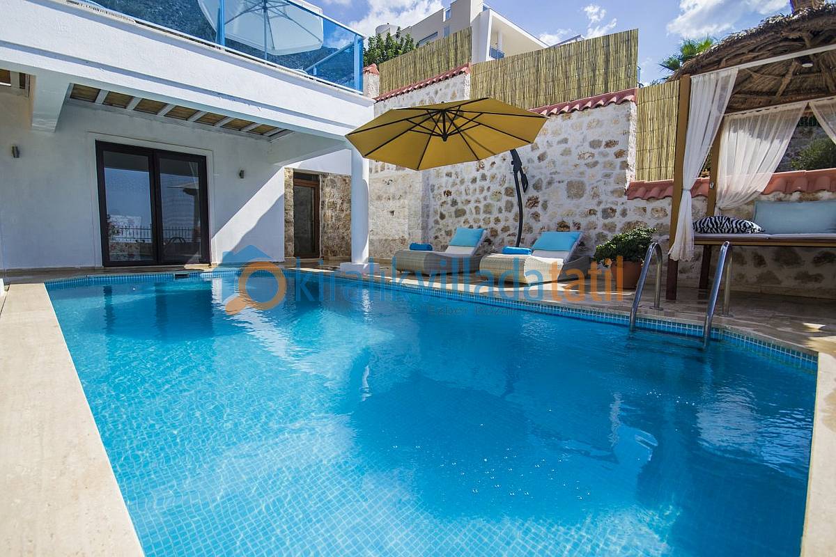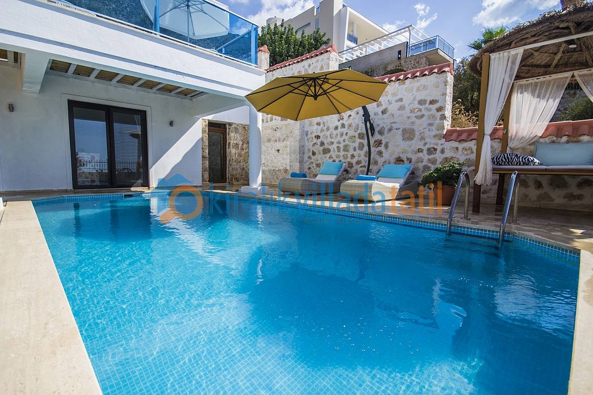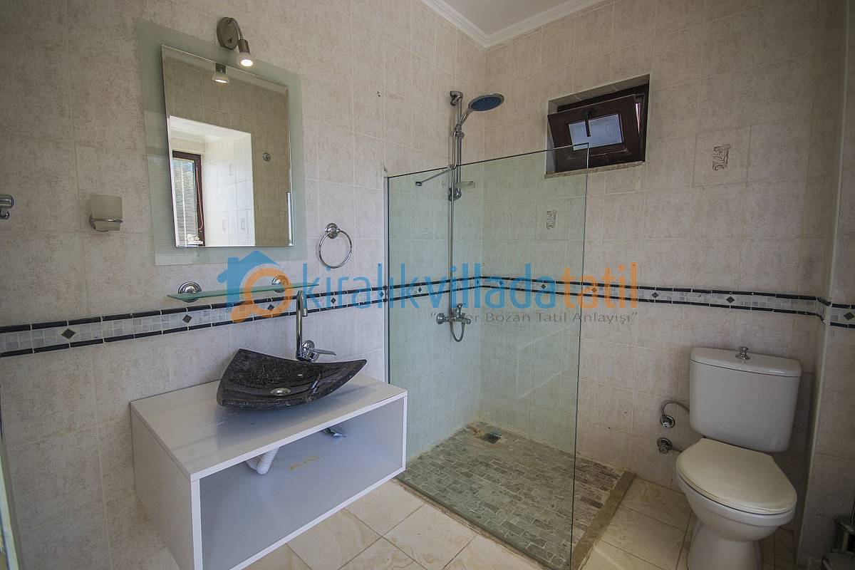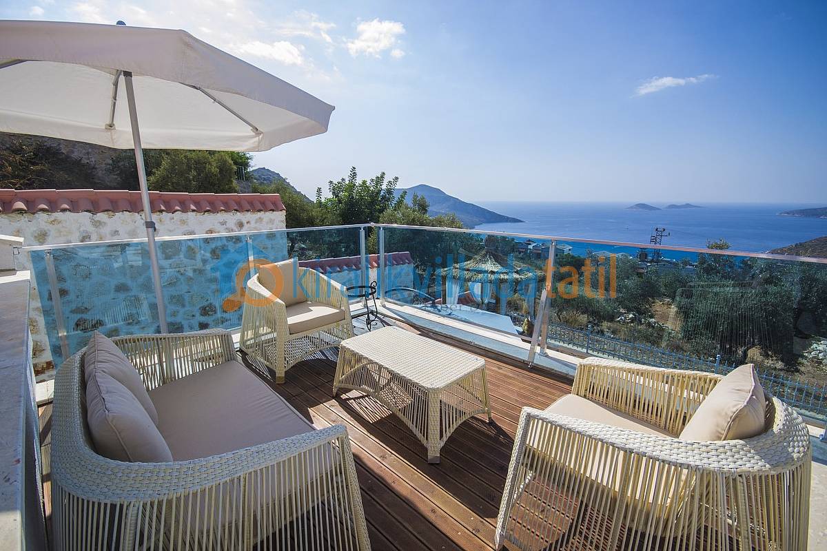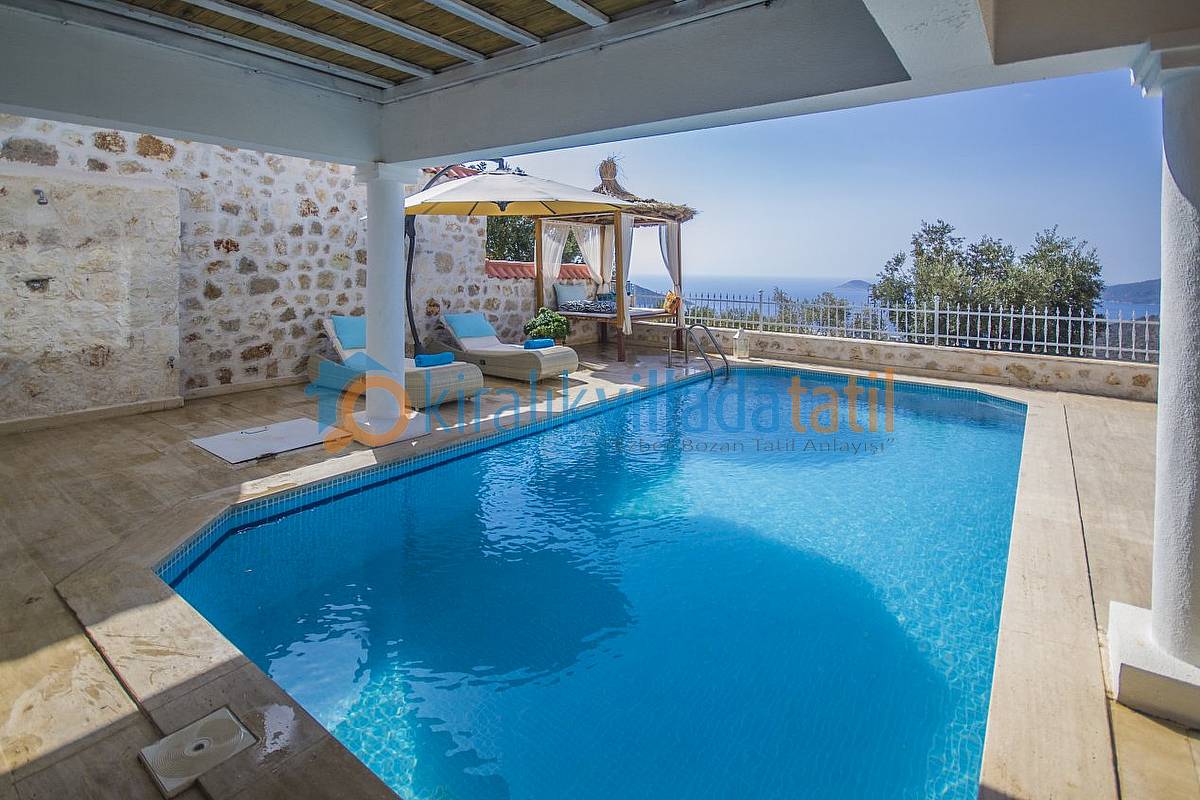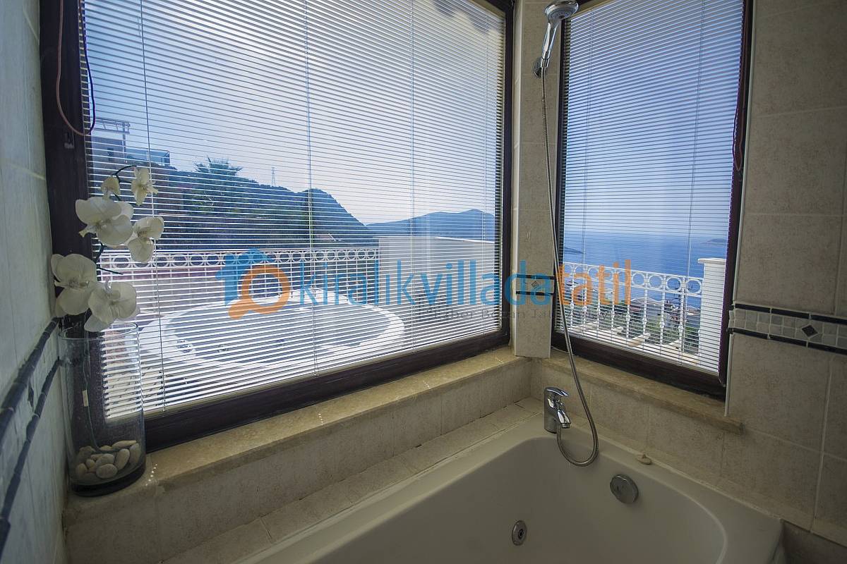 Kalkan şehir merkezine yakın bir konumda olan Kızıltaş mevkiinde bulunan bu lüks tatil villamız, 4 yatak odası ile 7 kişilik kapasiteye sahiptir. Villamızdaki çatı süiti haricindeki diğer odalar ortak banyo wc kullanmaktadır. Toplamda 3 adet banyo WC bulunmaktadır