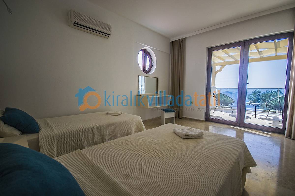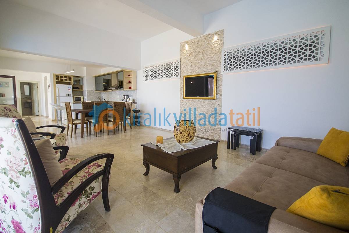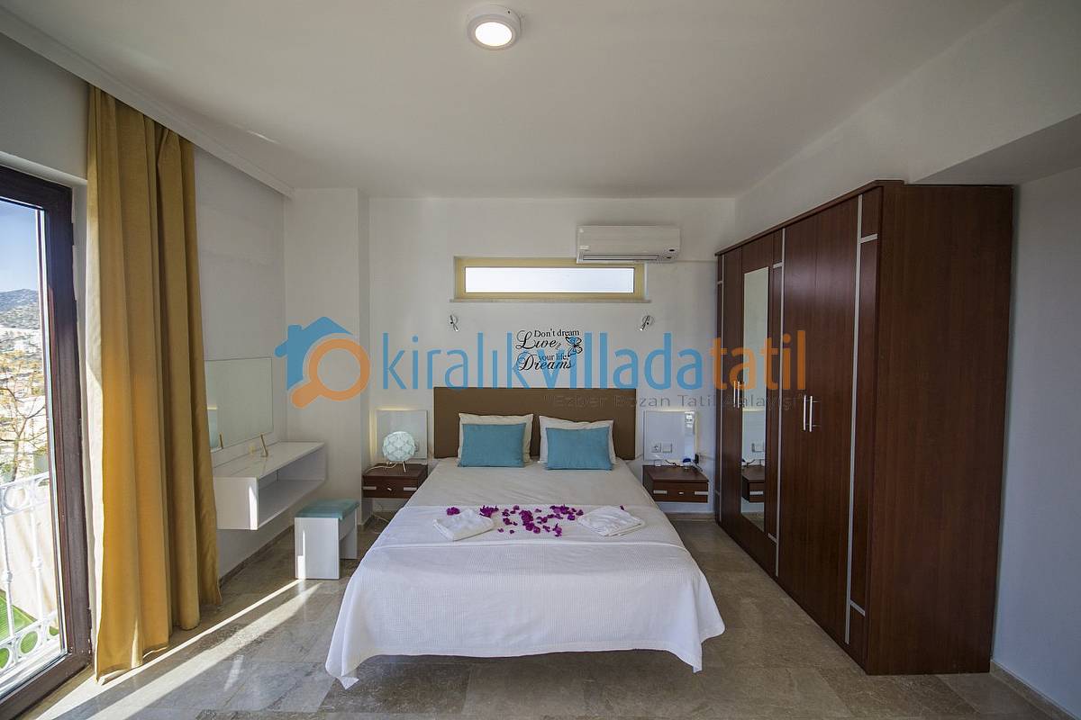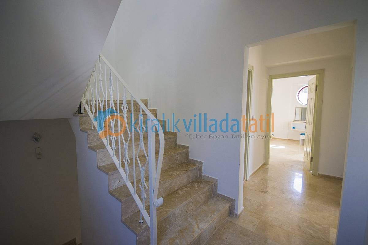 Oldukça şık ve zevkli bir biçimde dizayn edilen villamız 3 kattan oluşmakta, zemin katta Mutfak oturma odası ve tek kişilik bir yatak odası, 2.katta bir çift kişilik yatak odası ve 2 tek kişilik yatağın bulunduğu genç yatak odası, ayrıca oturma grubu ve şezlongların bulunduğu teras, 3.katta ise çatı katı süiti yer almaktadır. Çatı süitinde manzaraya karşı jakuzi keyfi de yapabilirsiniz
