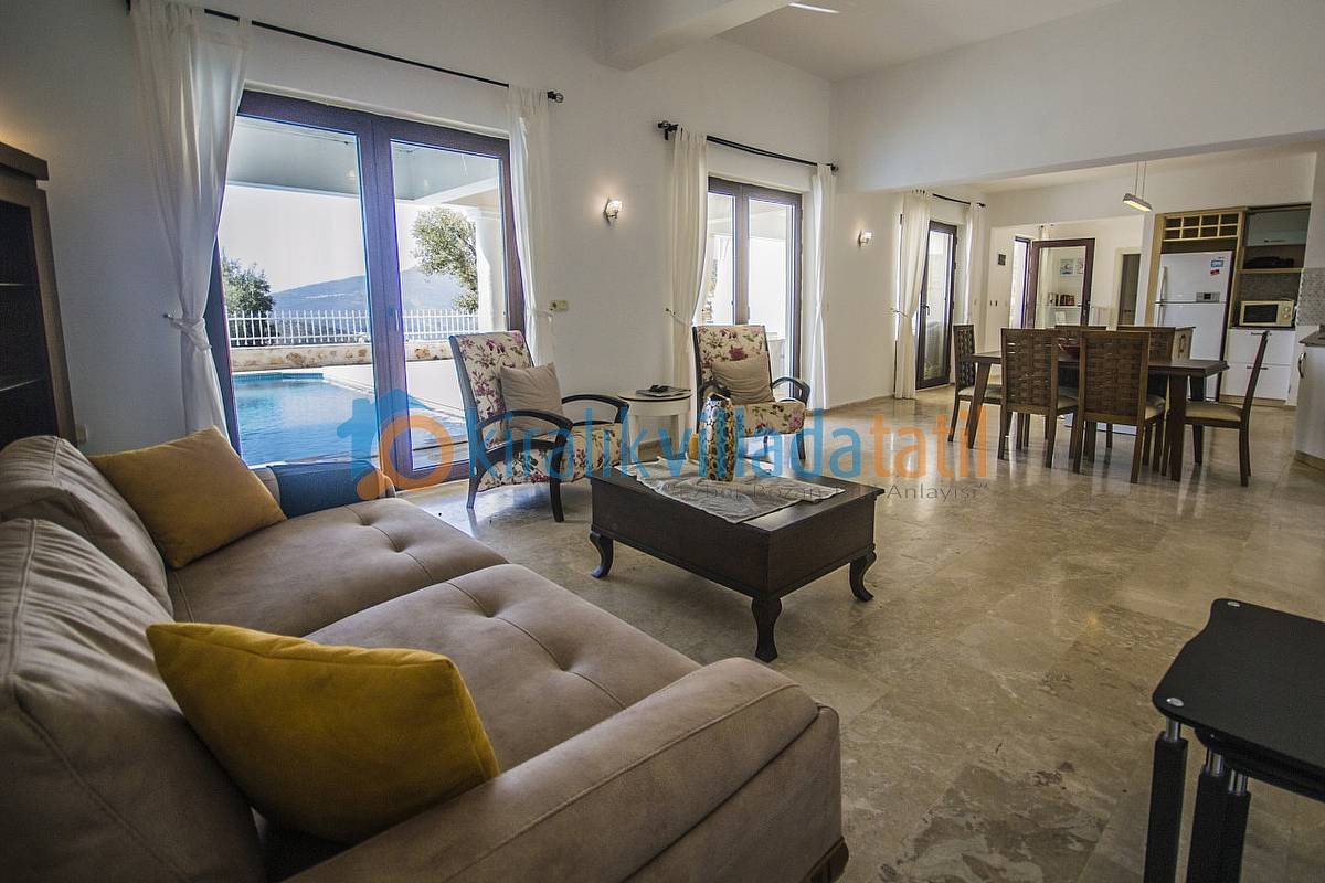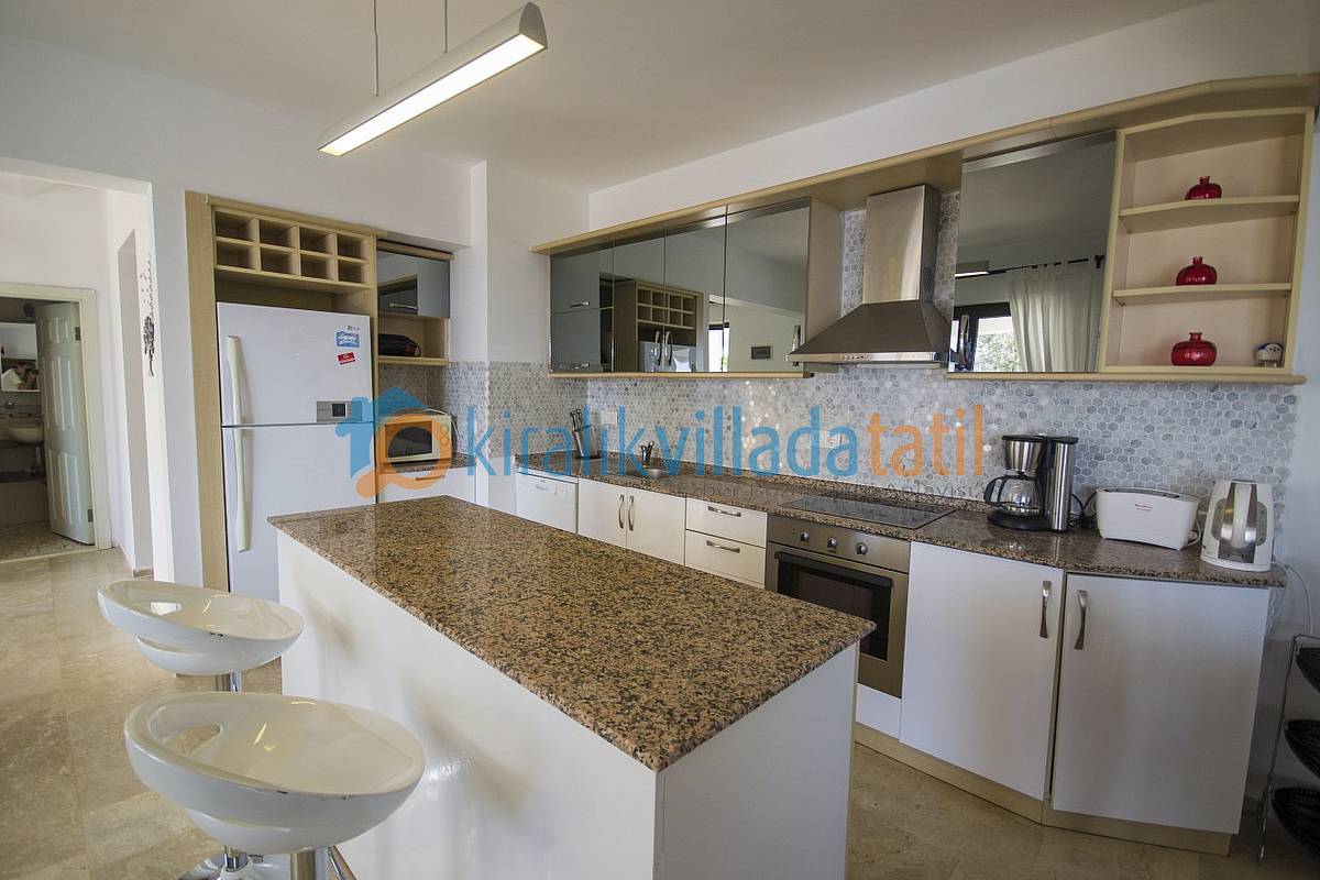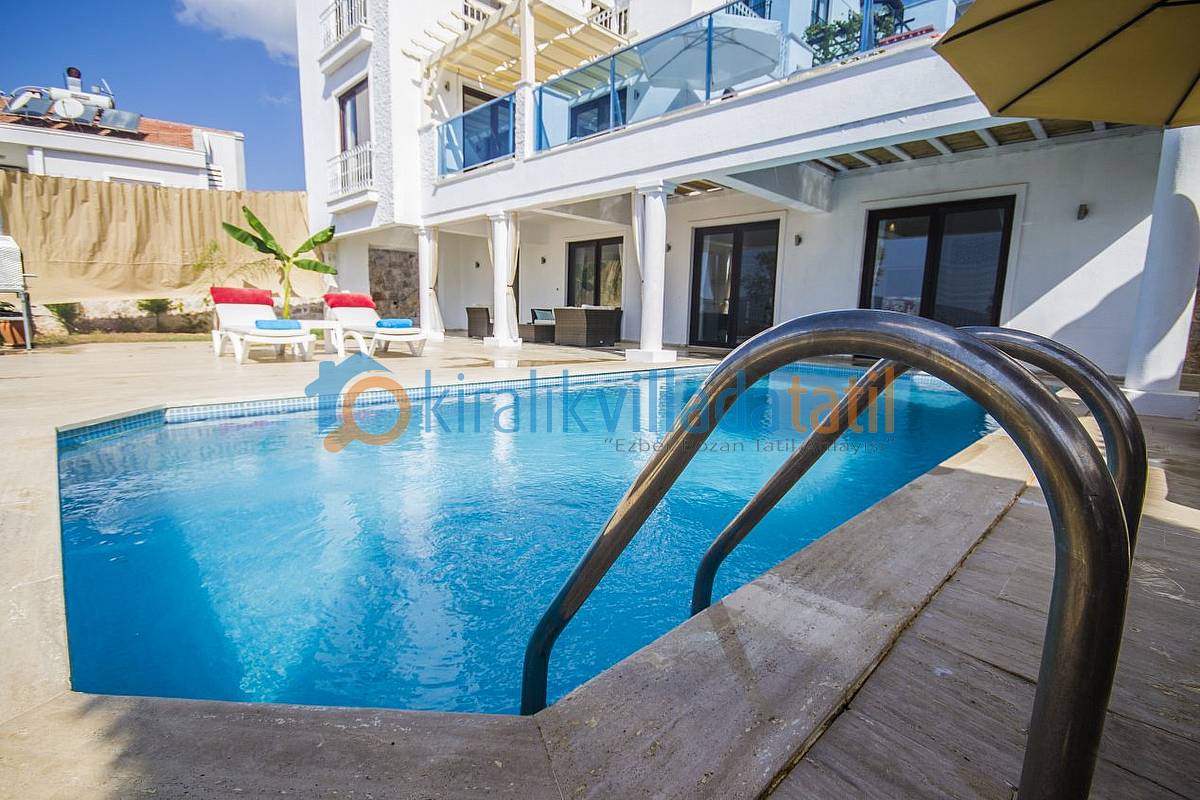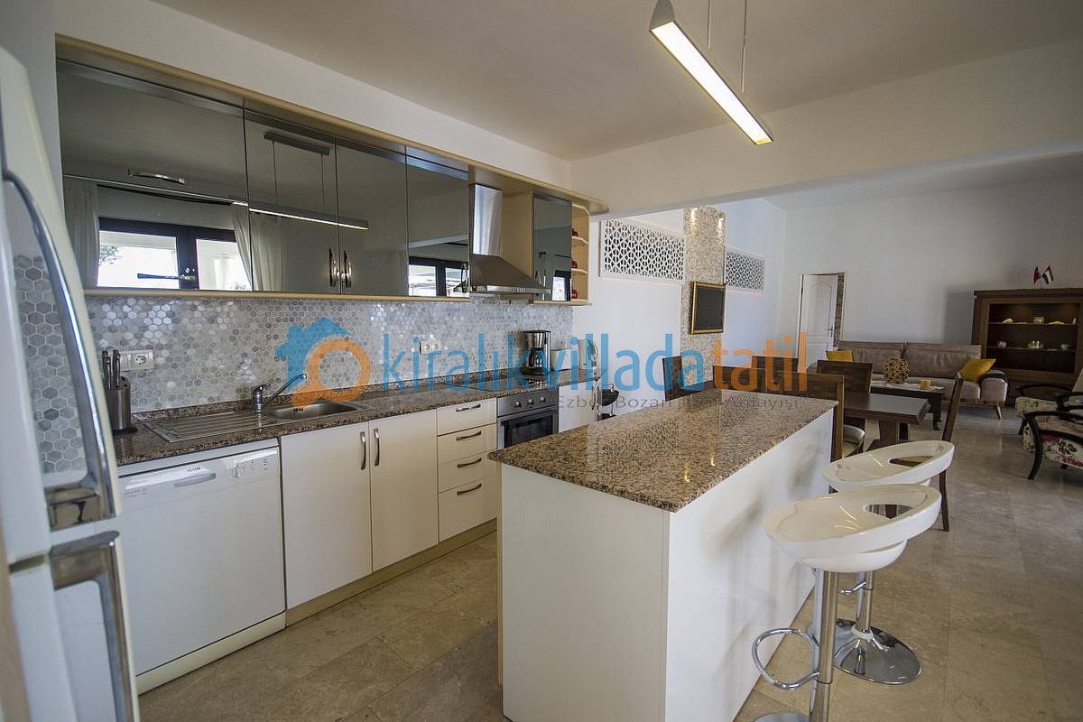 Oldukça şık ve zevkli bir biçimde dizayn edilen villamız 3 kattan oluşmakta, zemin katta Mutfak oturma odası ve tek kişilik bir yatak odası, 2.katta bir çift kişilik yatak odası ve 2 tek kişilik yatağın bulunduğu genç yatak odası, ayrıca oturma grubu ve şezlongların bulunduğu teras, 3.katta ise çatı katı süiti yer almaktadır. Çatı süitinde manzaraya karşı jakuzi keyfi de yapabilirsiniz