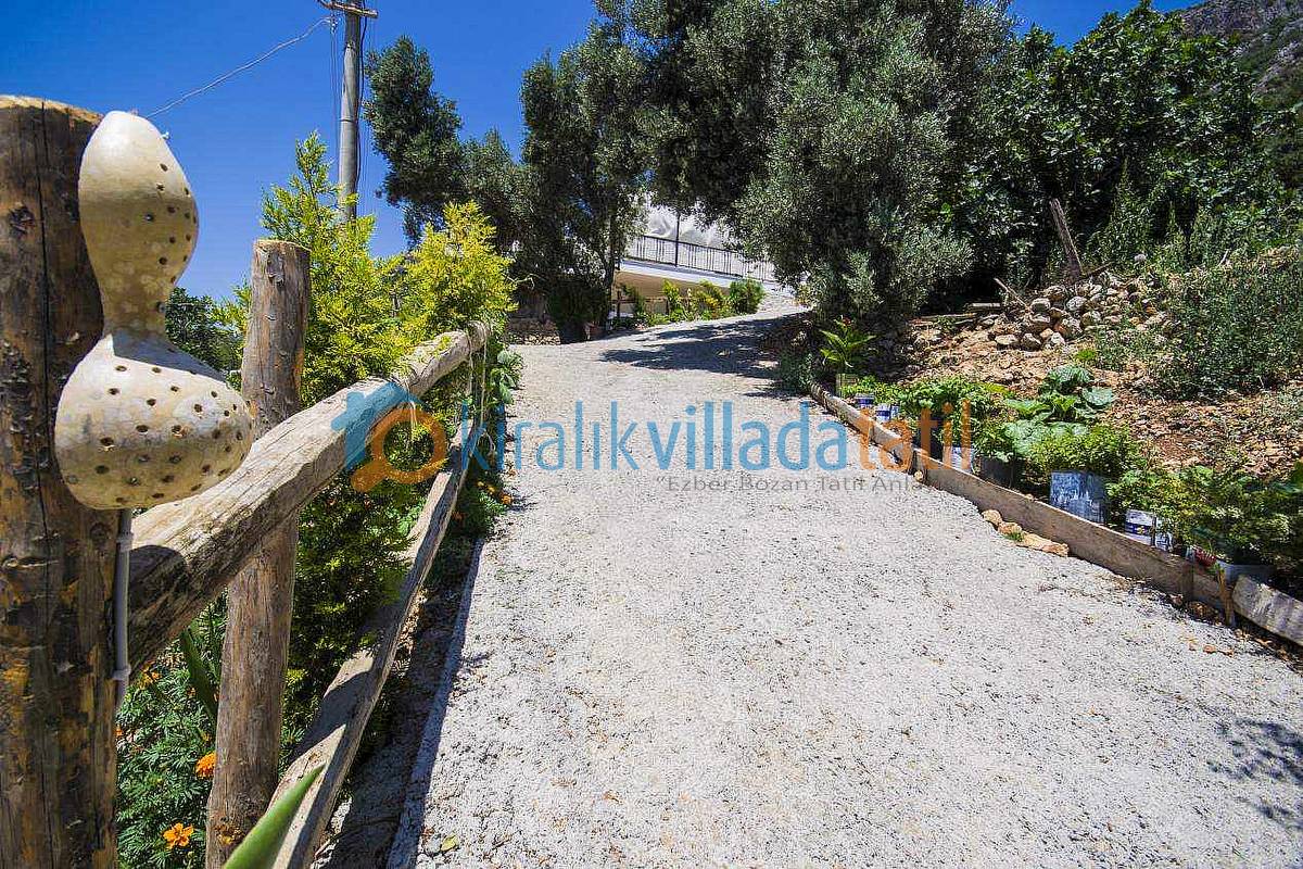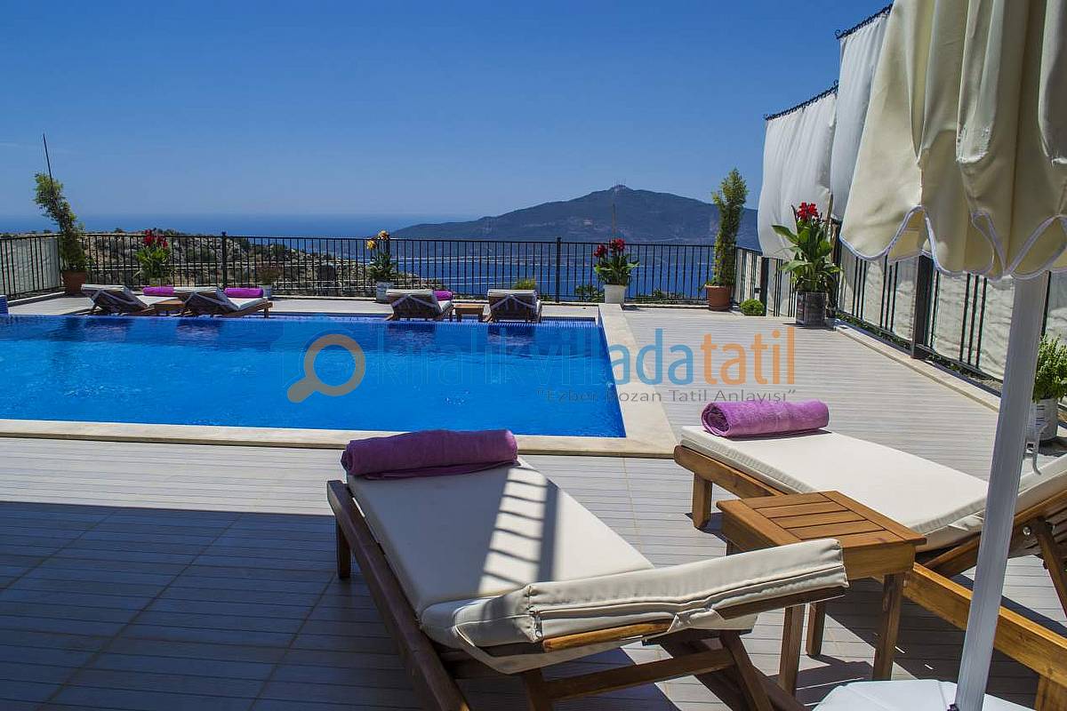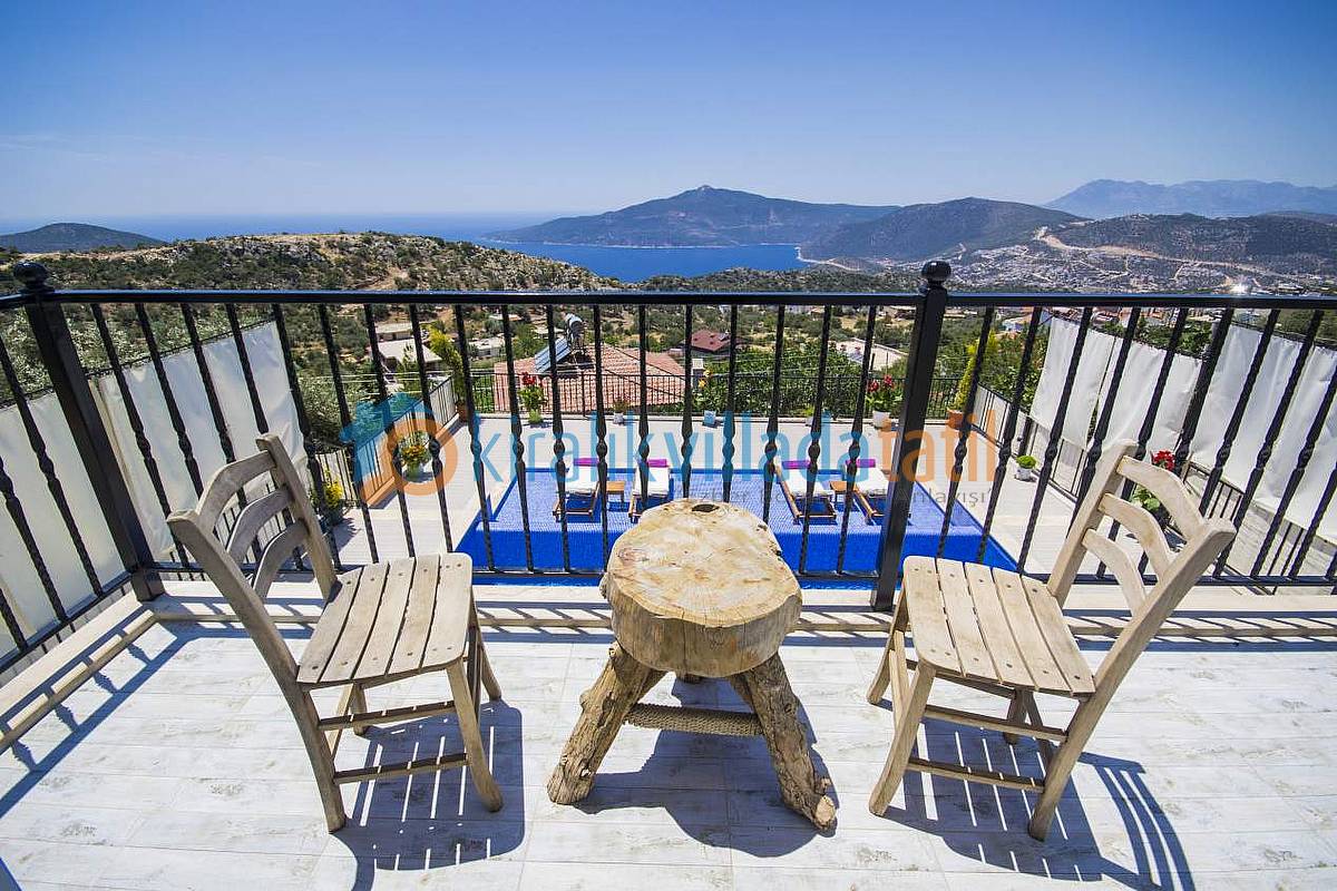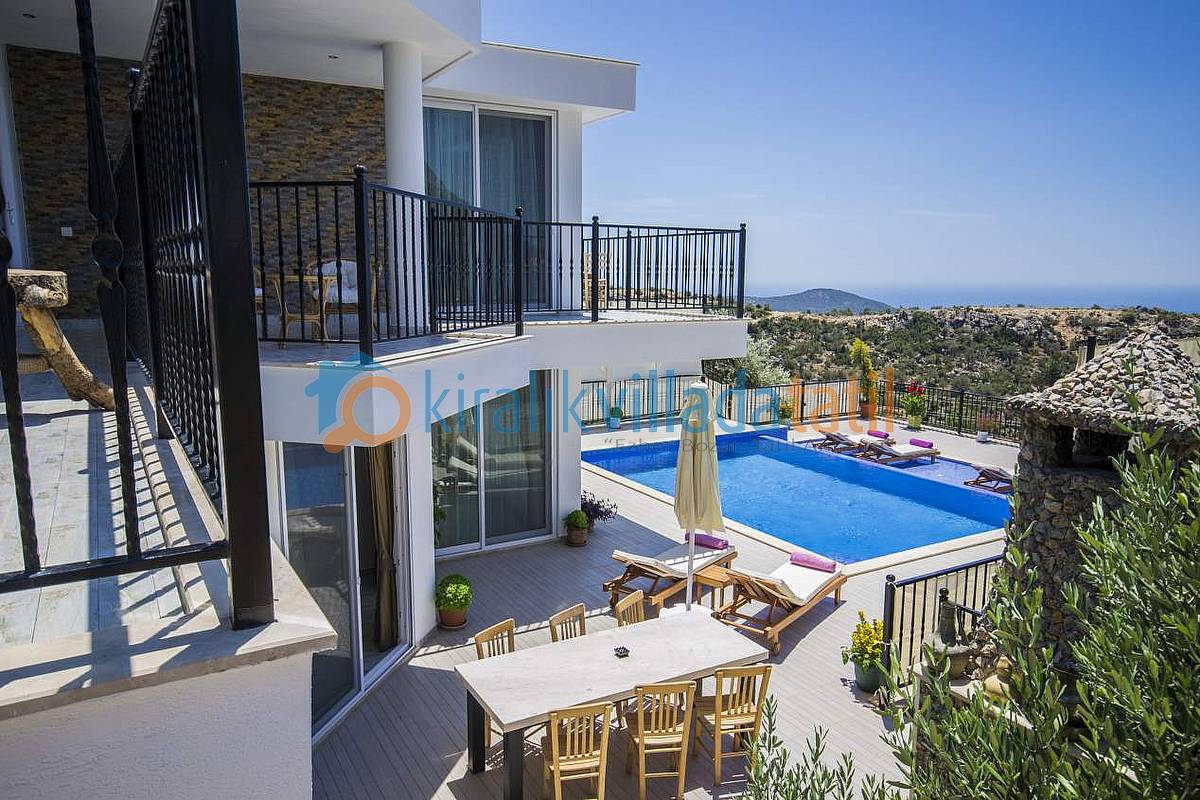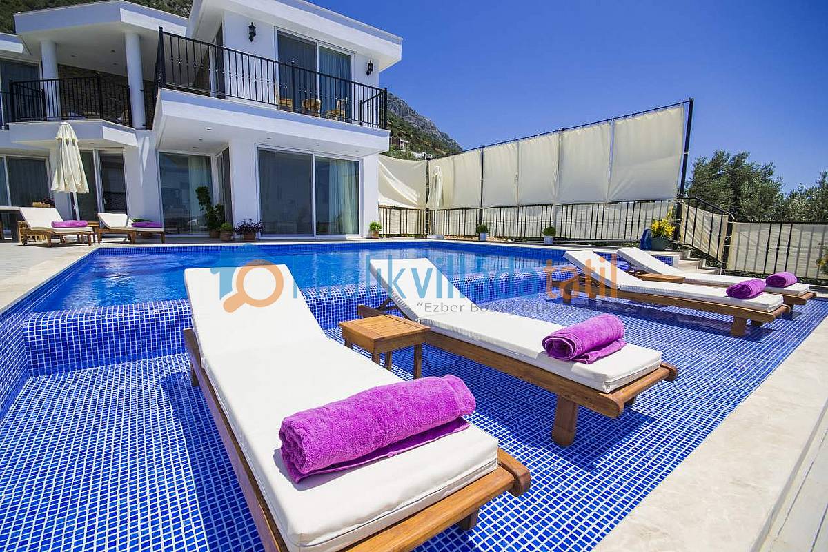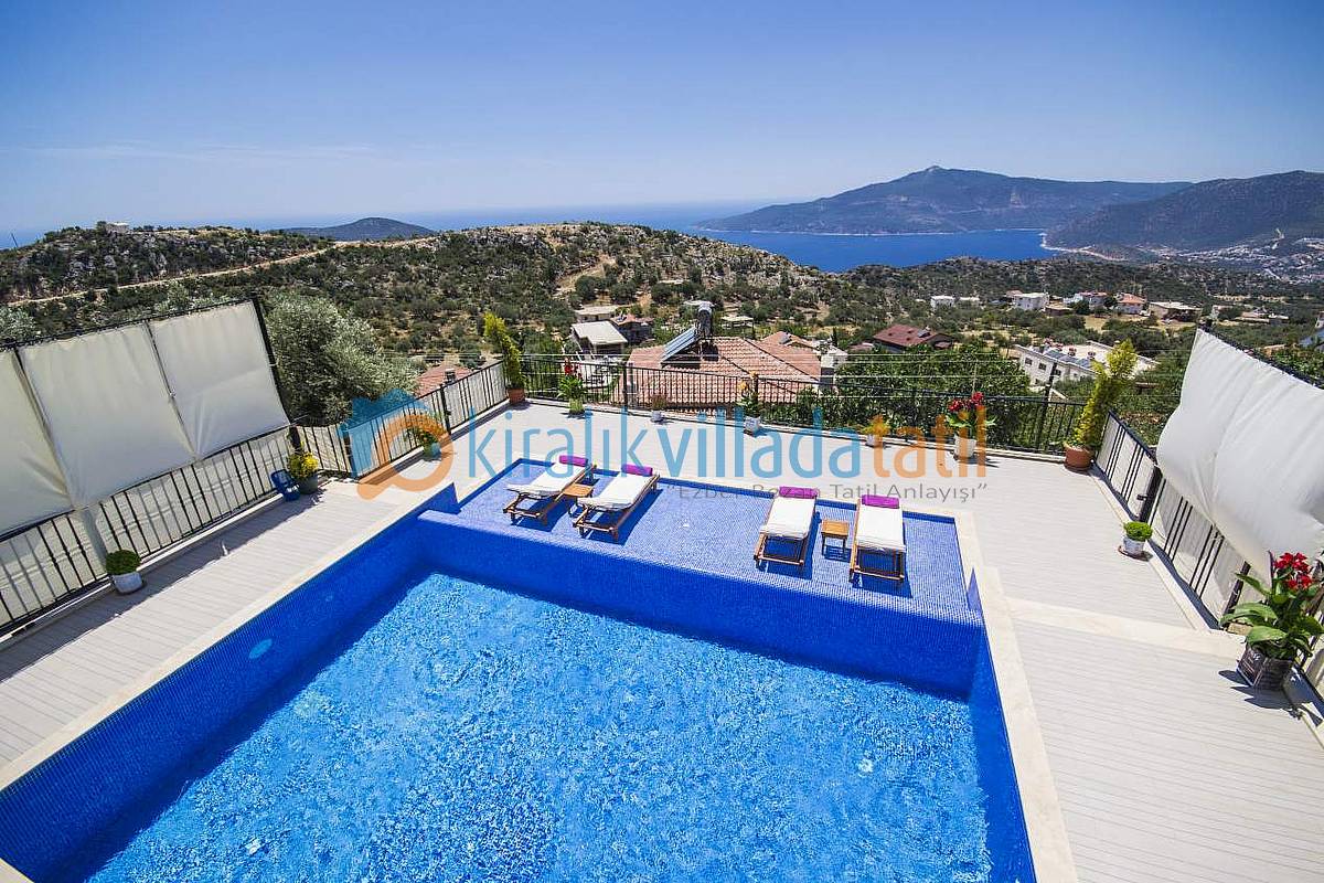 Hemen Mutfak çıkışında, özel yapım taş barbekü ve yemek masasını bulabilirsiniz. Villamızda İnternet bağlantısı, özel açık otopark mevcuttur. Kalkan Şehir merkezine 3-3,5 km olan villamız yaklaşık 5 dakikalık sürüş mesafesi ile merkeze yakın konumdadır. Muhteşem Kalkan koyu manzarası, Geniş yüzme havuzu, geniş sığ havuzu, terasları ve kullanım alanları ile konuklarına ferah bir tatil imkanı sağlamaktadır. Düşük sezonlarda Balayı yapacak müşterilerimiz için merkeze yakın konumda olması sıcaklık açısından büyük bir avantajdır. Villamızın çok yakın çevresinde yapılaşma olmadığından Balayı çiftlerimiz için çok uygun bir villadır. Villamızın sağ ve sol tarafı tamamen perde hasır vs… ile korunaklı hale getirilmiştir. Havuz terasının korkuluk demirlerinin içleri de kumaş ile kapatılmıştır.