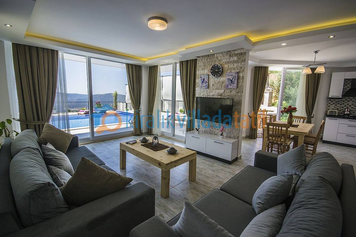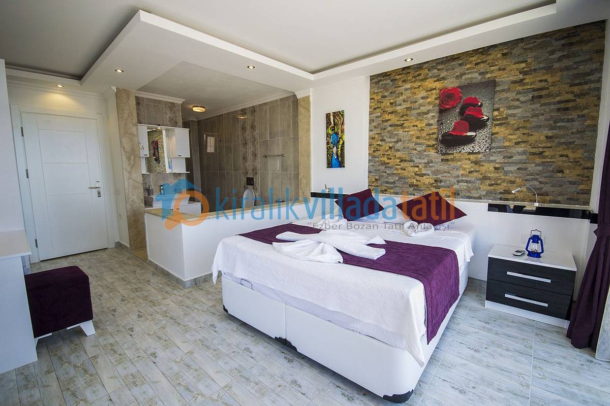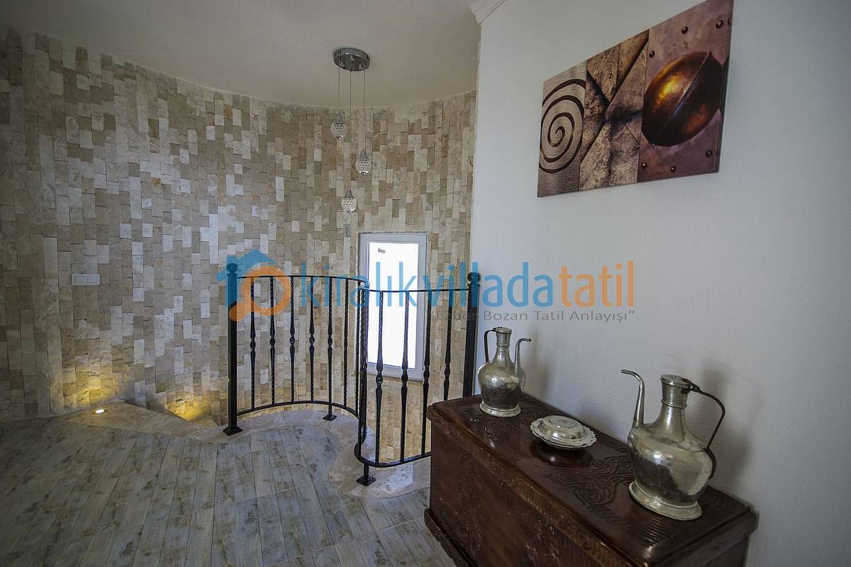 1.Katta havuz terasına çıkan bir oturma odası, açık plan mutfak ve bir süit (banyolu) yatak odası bulunmaktadır. İkinci katta ise çift kişilik süit (banyolu), Jakuzili, Balkonlu ve Muhteşem manzaralı bir yatak odası bulunmaktadır. Ortak kullanım balkonda ise manzaraya veya günbatımına karşı içeceklerinizi yudumlayabileceğiniz yada günün yorgunluğunu atabileceğiniz bir oturma grubu koyulacaktır.