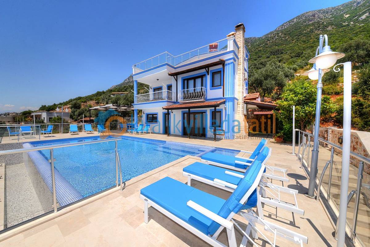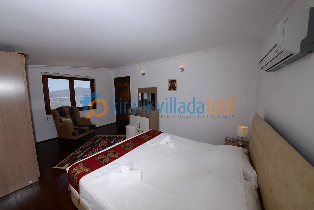 Kalkan Kördere mevkiindeki bu tatil villası 5 yatak odası ile 10 kişilik kapasiteye sahiptir. Villamızda toplam 2 adet süit yatak odası bulunmakta, 1 adet süit 1.kattaki çift kişilik odada diğeri çatı katı yatak odasında bulunmaktadır. Geri kalan Yatak odaları ortak banyo tuvalet kullanmaktadır. 3 yatak odasında çift kişilik (double) yatak 2 yatak odasında da tek kişilik 4 yatak (single) bulunmaktadır. 2011 yılında ilk defa kiraya çıkmış bu özel villamız her yıl bakımdan geçmekte ve yenilenmektedir. Villamızda Şehir gürültüsünden uzak muhteşem bir manzaraya nazır rahat ve huzurlu bir tatil yapacaksınız. Ana yatak odasında bir adet sabit bebek karyolası ve TV ‘de mevcuttur.