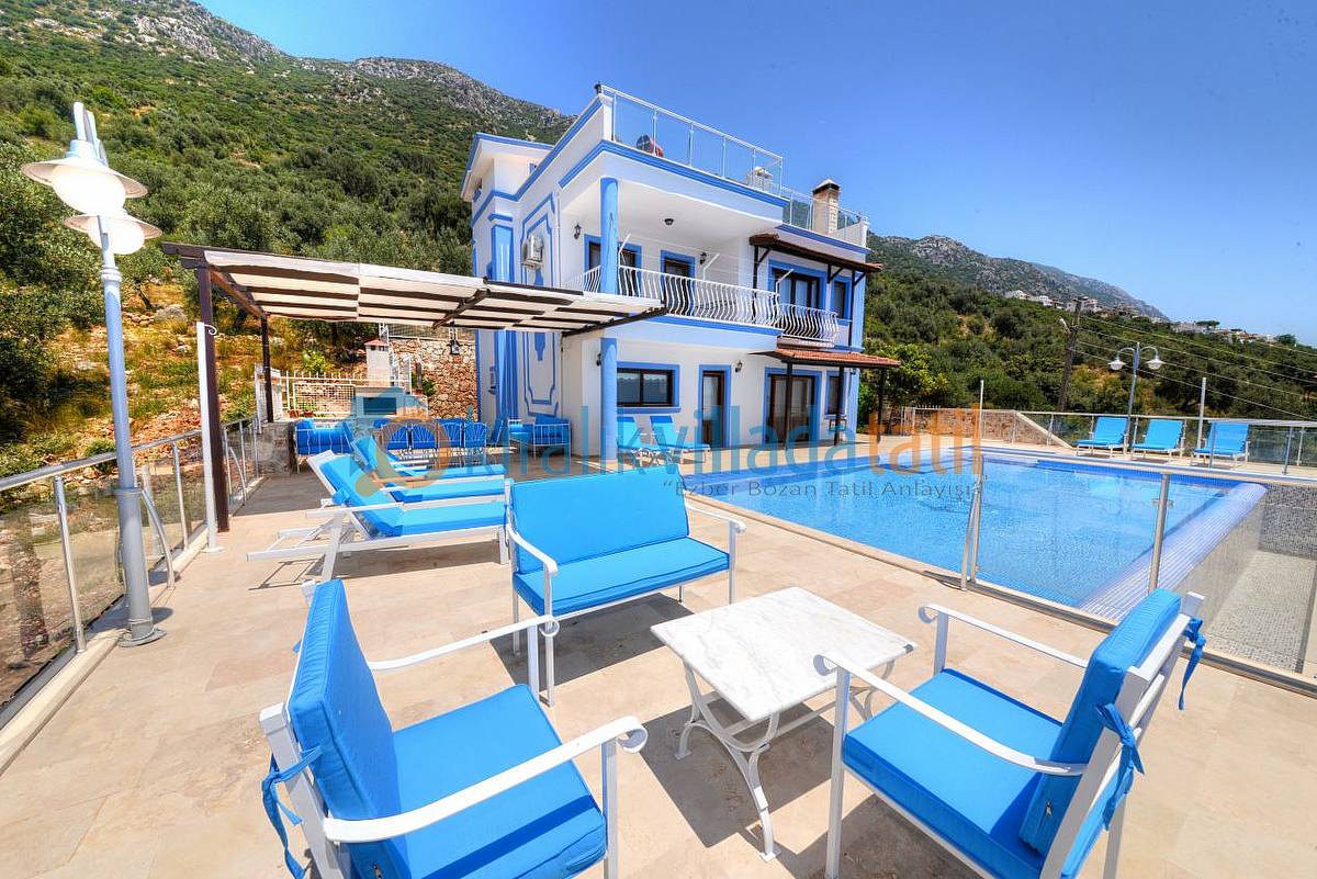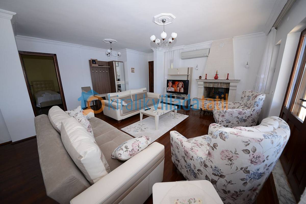 Tamamen mobilyalı, klimalı, beş yatak odasından oluşan villamız 60 metrekarelik (12 mt x 5 metre) özel ısıtmalı havuz ve çocuk havuzu da bulunmaktadır. Ayrıca havuzumuzun içinde oturarak keyif yapabileceğiniz bir hidromasaj sistemi de bulunmaktadır. Terasta açık havada yemek ve içmek için mobilya ve sandalyeler mevcuttur. Villamız mülkiyetinde yanında ve arkasında zeytinlik bahçesi bulunmaktadır.