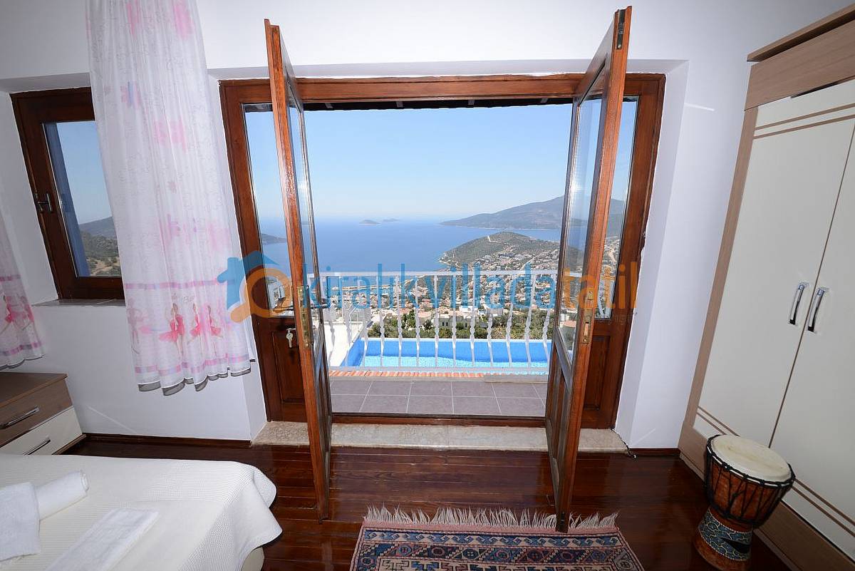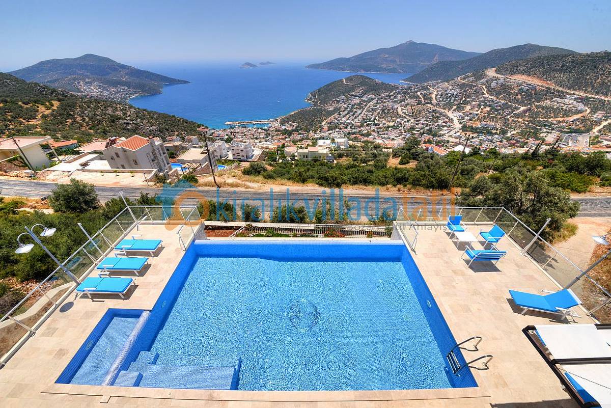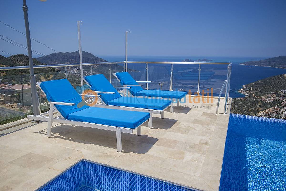 Kalkan’daki en güzel manzaraya sahip bu villamızda tatil yaparken Akdeniz’in muhteşem manzarası sizlere eşlik edecektir. 150 metrekarelik güneşlenme terasından, havuzundan yada Fransız tipi tamamen açılabilen pencerelerinden bu muhteşem manzaranın tadını çıkartabilirsiniz.