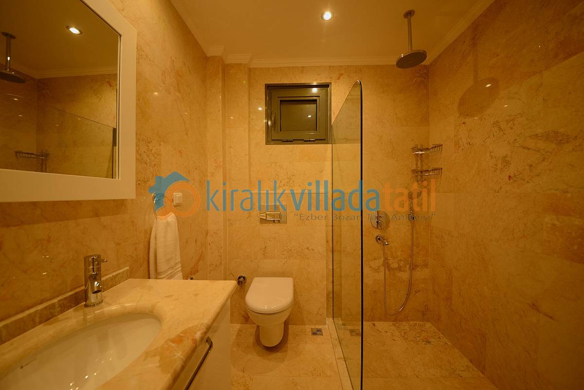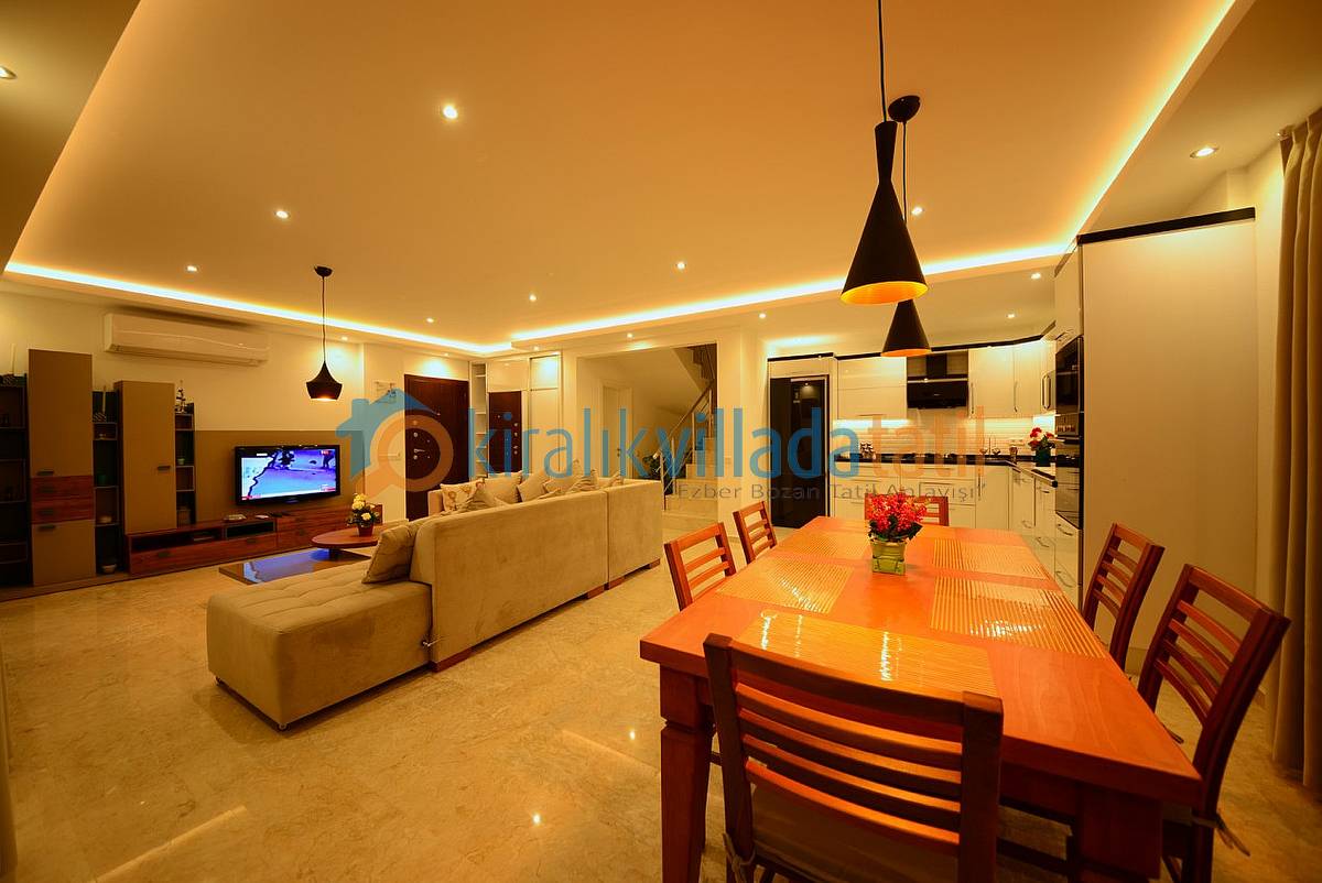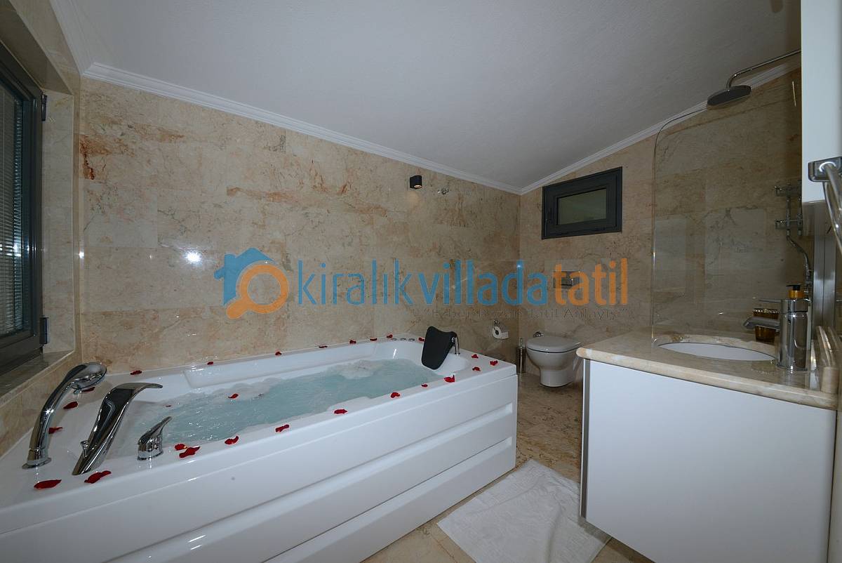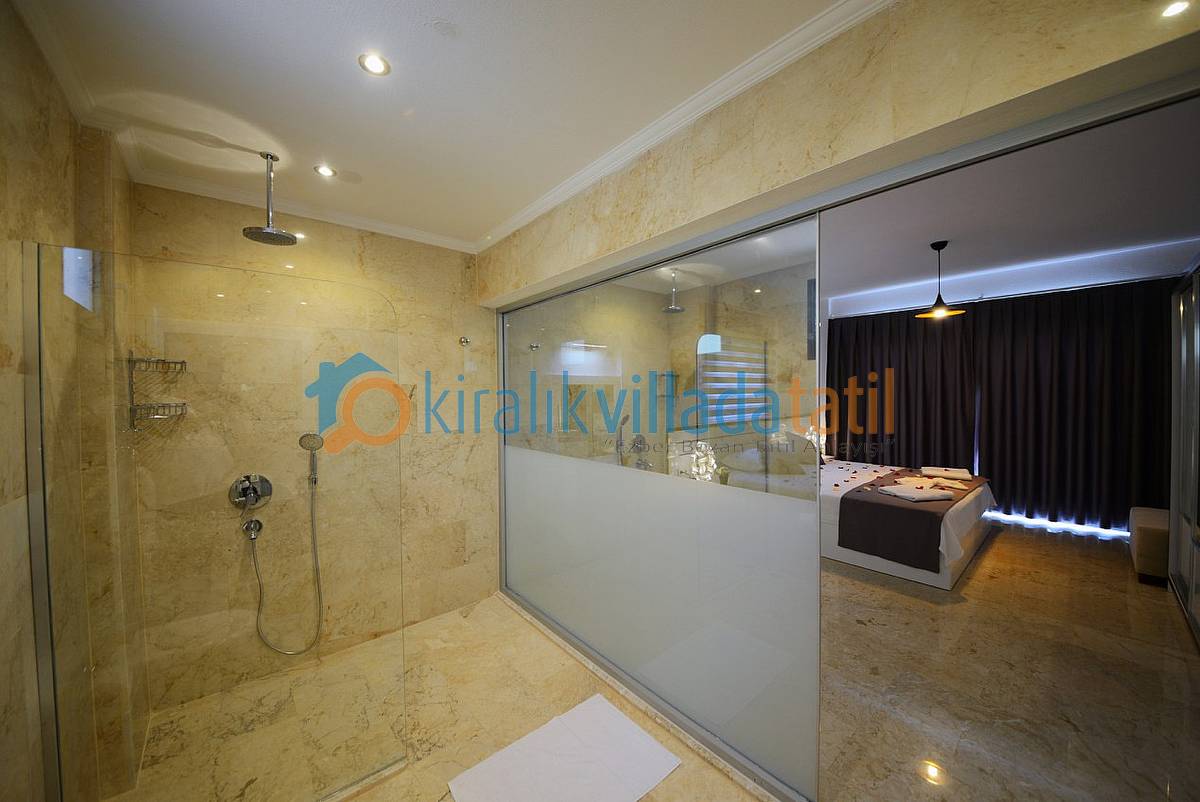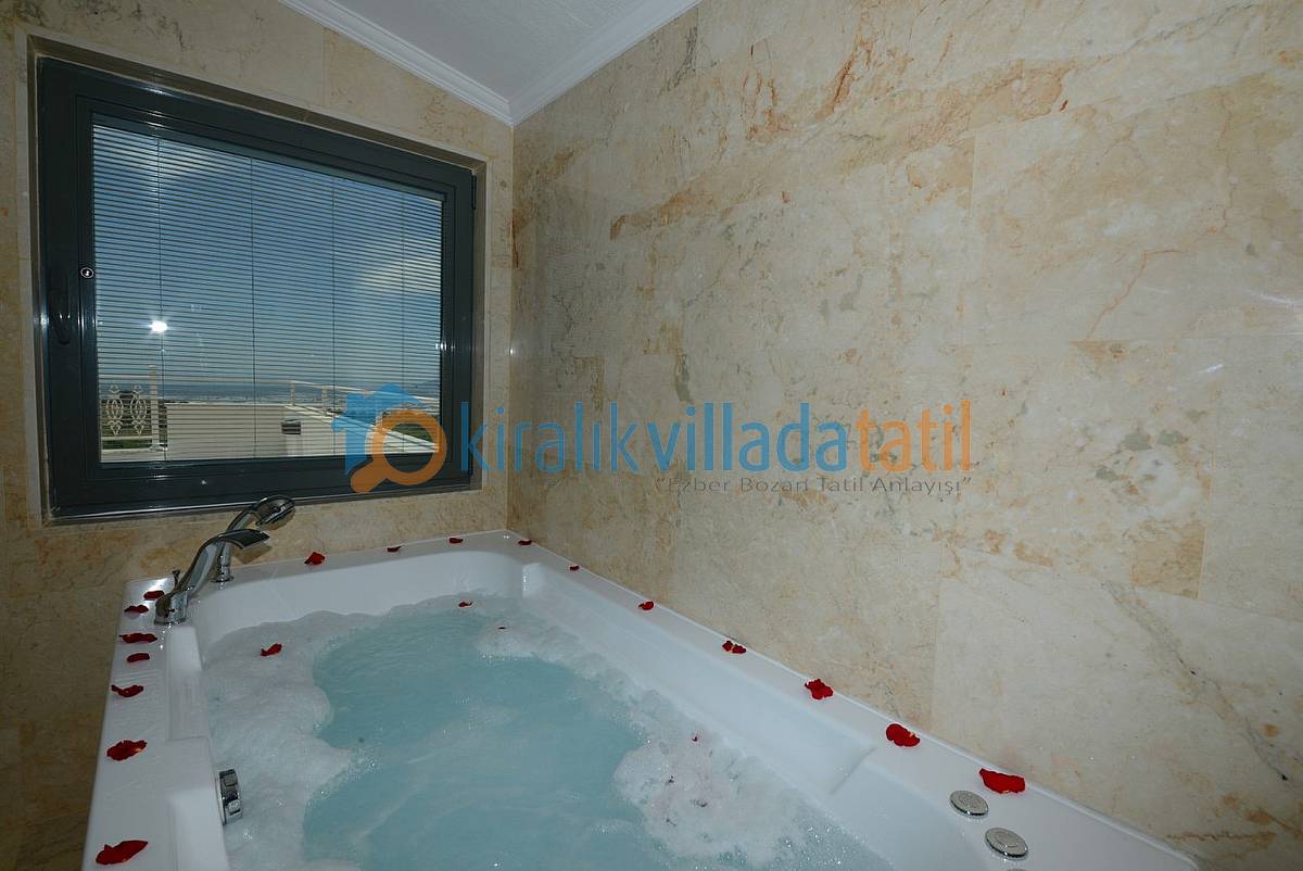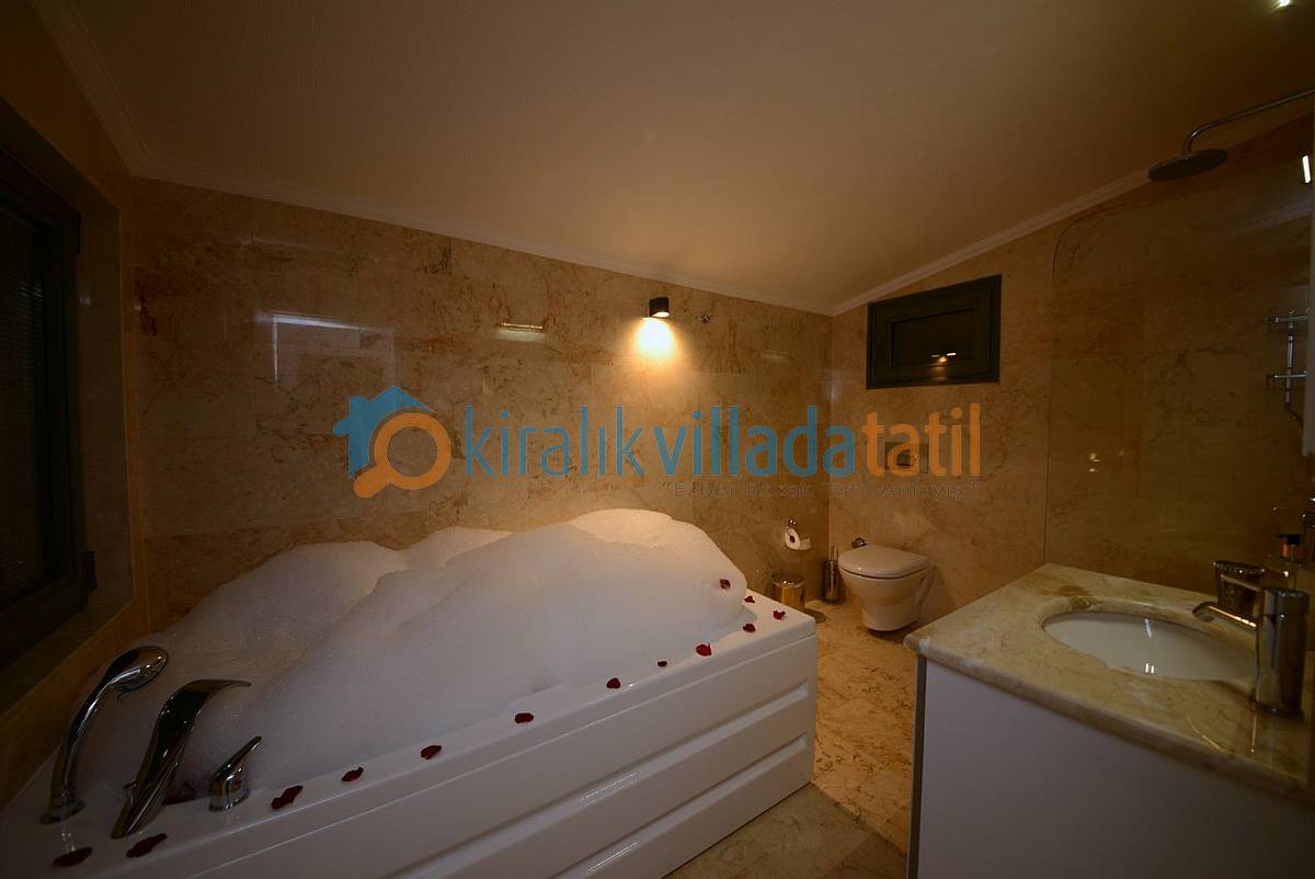 Muhteşem Patara Manzarasına hakim bir tepe üzerindeki konumu ve Modern iç dizaynı ile ön plana çıkan villamıza, anayoldan sonra yaklaşık 100 metrelik bir yoldan gidilmektedir. Kalkan şehir merkezine yaklaşık 7 km mesafede, günlük ihtiyaçlarınız için en yakın köy meydanı ise (üzümlü köyü) 1 km mesafededir. Araç genel olarak gereklidir. Etrafında tamamı korunaklı olmak üzere başka villalar da mevcuttur. Tamamen doğa içinde full deniz ve doğa manzaralı bir konuma sahiptir. Villamızda tatiliniz için gerekli her şey mevcuttur. İnternet bağlantısı, jakuzi ve çocuk havuzu bulunmaktadır. 1.katta bir adet çift kişilik ebeveyn yatak odası (banyolu) ve genç yatak odası bulunmaktadır. Çatı süitinde ise yine bir adet çift kişilik ebeveyn yatak odası (banyolu ve jakuzili) bulunmakta, teras katta 2 adet şezlong ve oturma grubu bulunmaktadır.