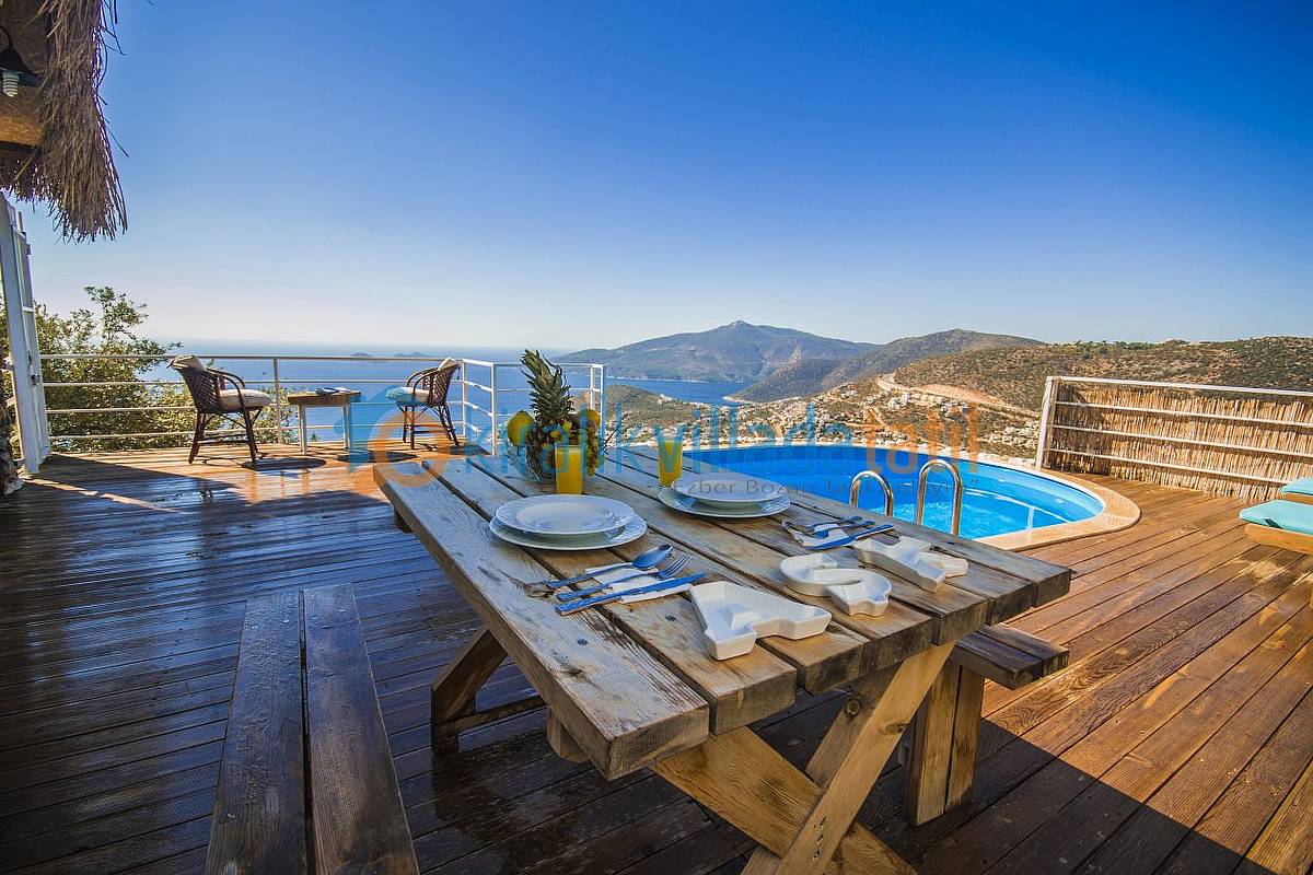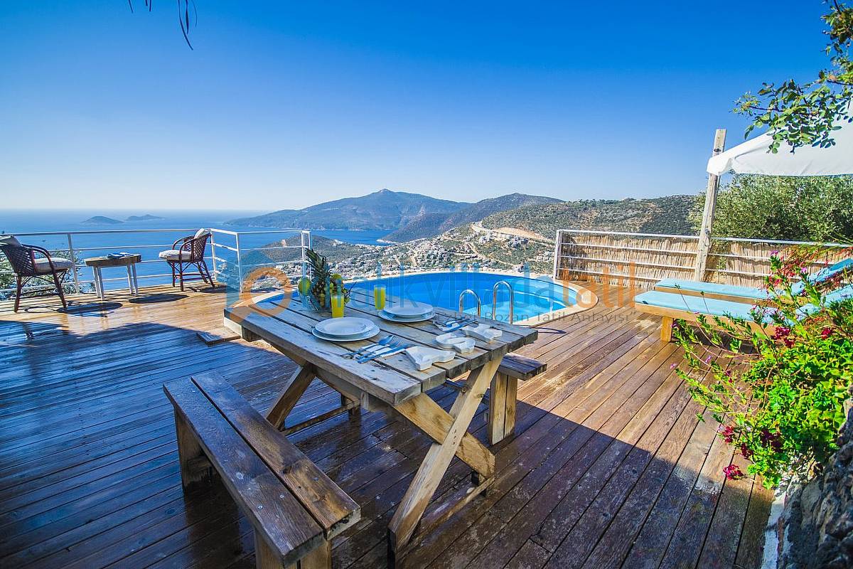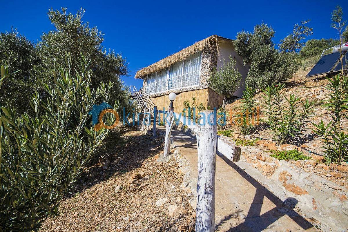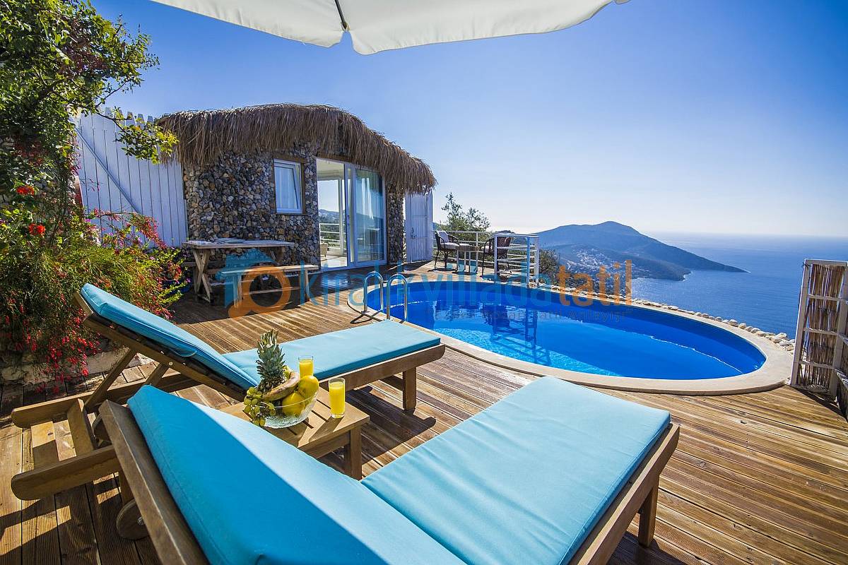 Sadece Kiralık Villada Tatil.com tarafından kiralamaya çıkarılan bu villamız Kalkan koyunun en güzel manzarasına sahip olan konumu ile doğa ile bütünleşmiş ve etraftan görünmeyen özelliğe sahip olacaktır. Demir, ahşap ve taş yapısı ile estetik bir görünüme sahip villamıza, aracınızı otoparkta bıraktıktan sonra yaklaşık 60 basamaktan oluşan yeşiller içinde manzaralı bir patika-merdiven yoldan çıkış yapılacaktır. Dolayısı ile yaşlı-engelli misafirlerimiz için pek uygun bir villa değildir.