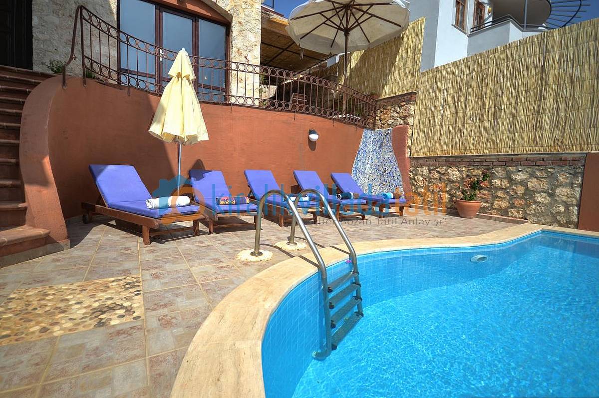 Kalkan Kızıltaş mevkiinde bulunan bu lüks özel dizayn konsept korunaklı villa 4 süit (banyolu) yatak odası ile 8 kişilik kapasiteye sahiptir.