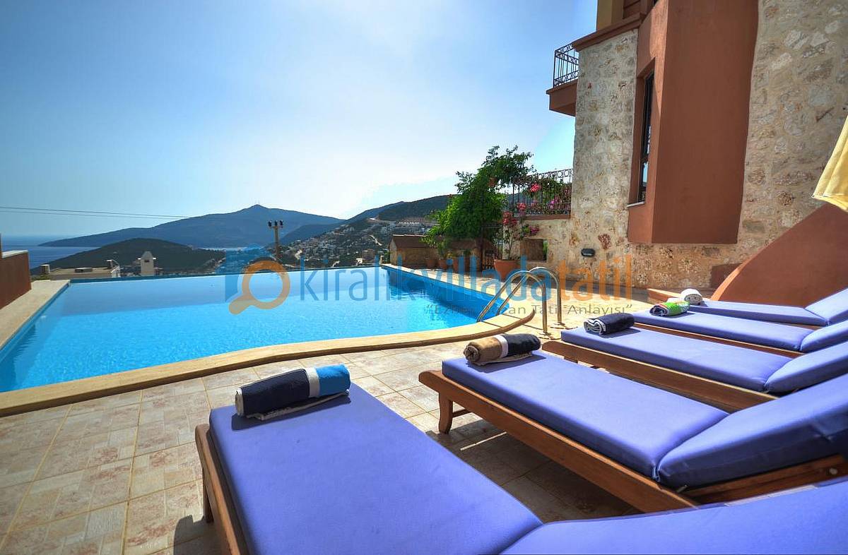 Denize ve merkeze yakın bir konumda bulunan villamızın havuz terasında ve tüm odalarından & balkonlarından muhteşem bir Kalkan koyu manzarası mevcuttur. Kalkan’ın manzara açısından en kaliteli bölgesi olan Kızıltaş mevkiinin tam ortasında bulunan villamızda tüm eşyalar 1.sınıf kalitededir.