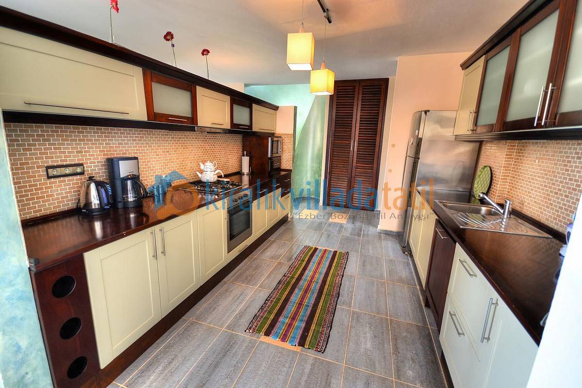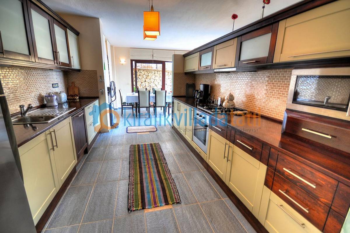 Villamızın 3 adet yatak odasında çift kişilik (double), 1 yatak odasında ise 2 adet tek kişilik (single) yatak bulunmaktadır. Özel dizayn geniş mutfağında her türlü araç gereç bulunmaktadır. Tatilin vazgeçilmez öğesi mangal ziyafetleriniz için tüpgaz ile çalışan alevtaşlı büyük boy bir barbekü bulunmaktadır. Ayrıca küçük bebekleriniz için birer adet çocuk yatağı ve Mama sandalyesi, araçlarınız için 2 araçlık özel otoparkı bulunmaktadır.
