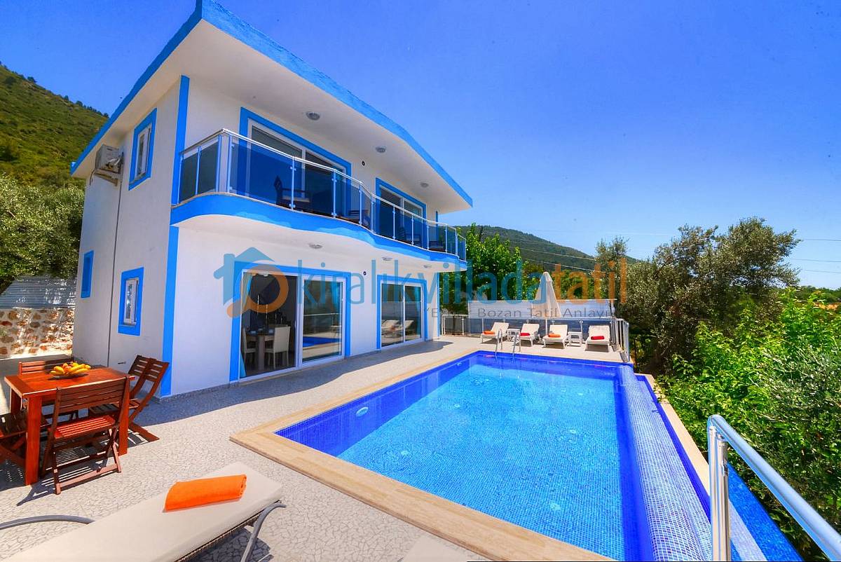 Üzümlü köyünün muhteşem doğası içinde bir yamaca konuşlanmış bu kiralık villa, Kalkan şehir merkezinden yaklaşık 9 km uzaklıktadır. Saklıkent yolu üzerindeki villamızdan Kalkan merkeze 10 dakika, meşhur Patara kumsalına 15 dakika, antik şehirlere 7 dakika ve Saklıkent kanyonuna 20 dakikada ulaşabilirsiniz. Günlük ihtiyaçlarınız için 700-800 metre uzaklıktaki köy meydanında 2 adet market mevcuttur.