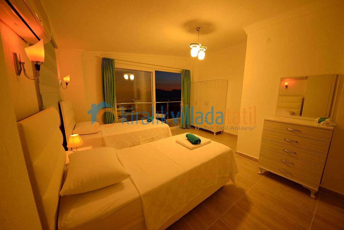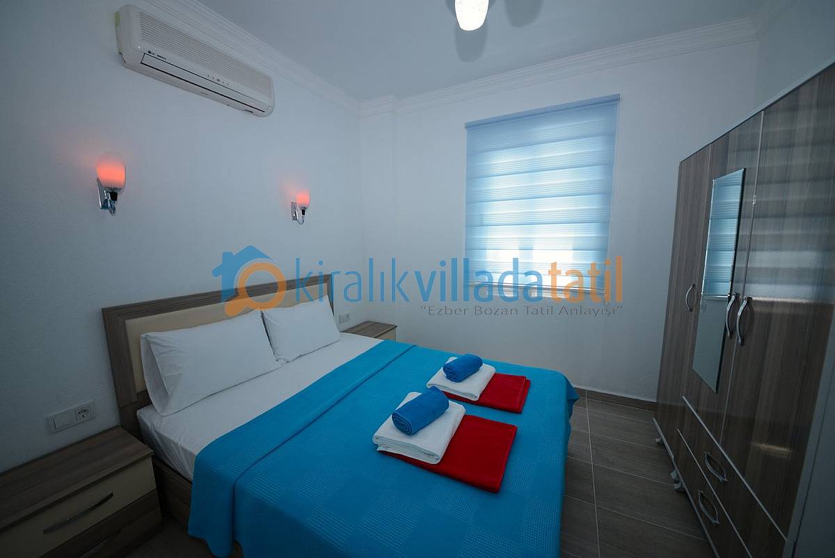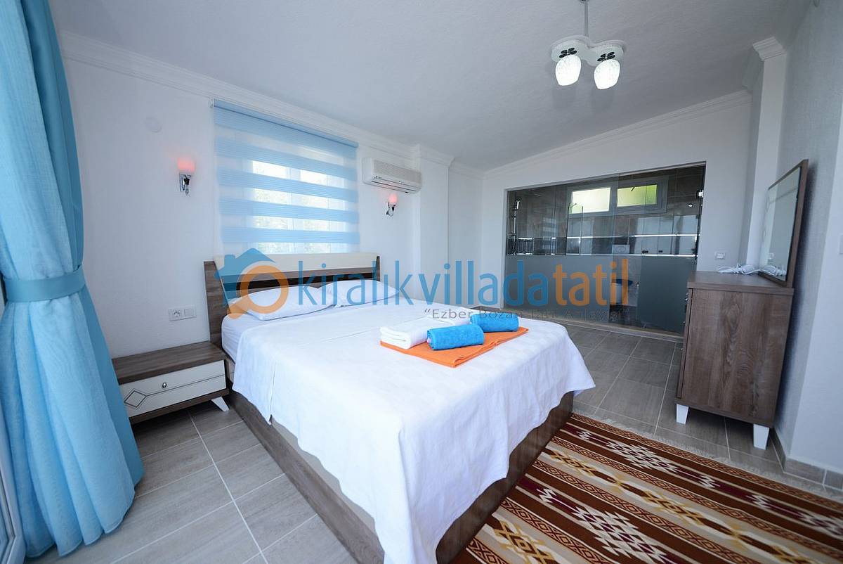 Kalkan Üzümlü köyünde bulunan bu Muhafazakar tatil villamız 3 yatak odası ile 6 kişilik kapasiteye sahiptir. 1.katta bulunan 2 adet süit (banyolu) yatak odamız deniz manzaralı, balkonlu ve klimalıdır.