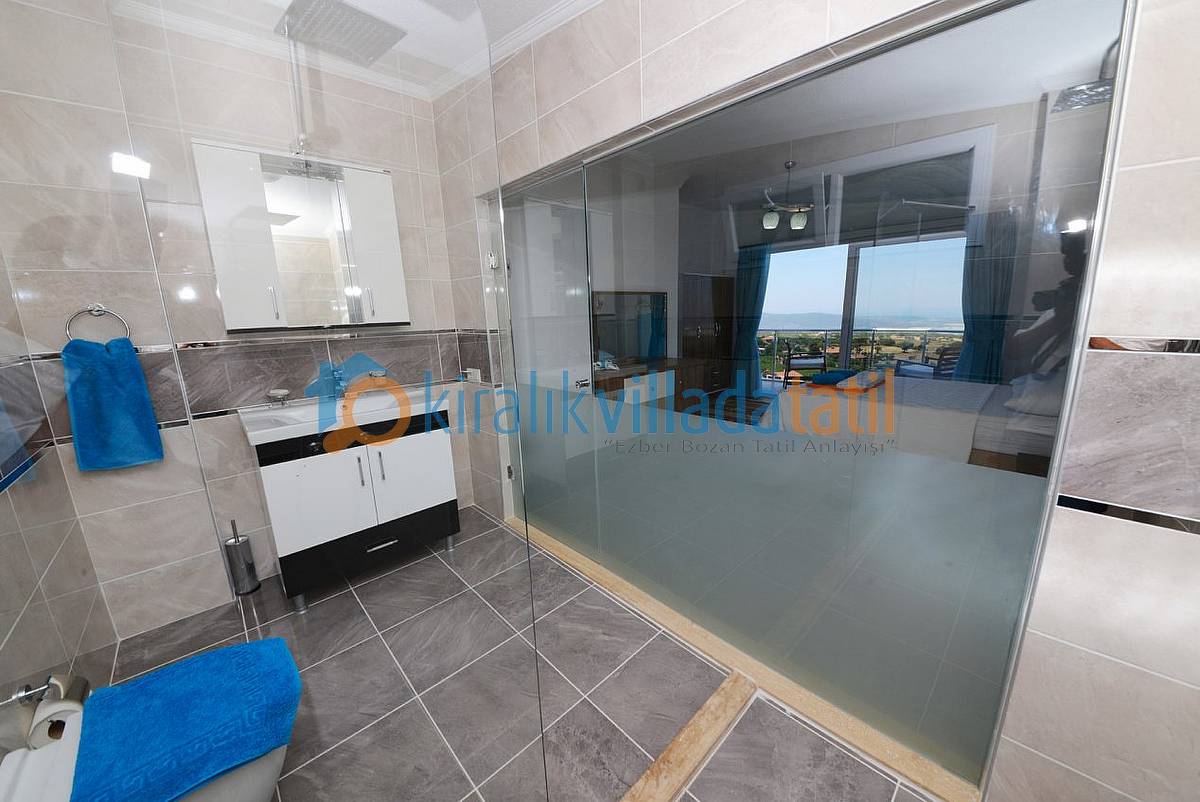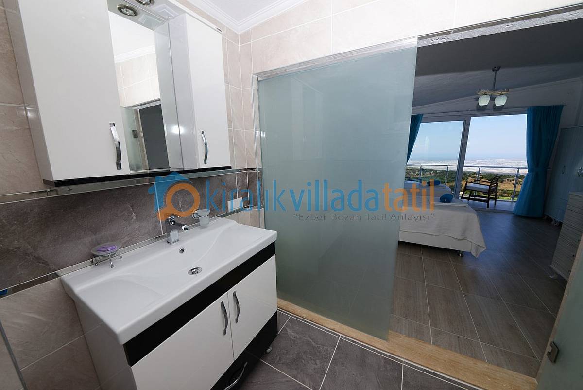 2015 yılında ilk defa Hizmete girmiş olan bu villamız, İslami kurallara göre yaşayan mutahasıp, muhafazakar ailelerimiz için en uygun villalardan biridir. Villamızın etraftan görünmemesi için gerekli tertibatlar alınmış olup, yakın çevresinde villa sahibimizin evinden başka ev bulunmamaktadır. İnternet bağlantısı, özel otoparkı bulunan villamız asma bahçeleri içinde bol oksijene sahip bir mekandır. Huzurlu ve sakin bir tatil geçirmek isteyen misafirlerimiz için ideal deniz manzaralı villa seçeneklerinden biridir.